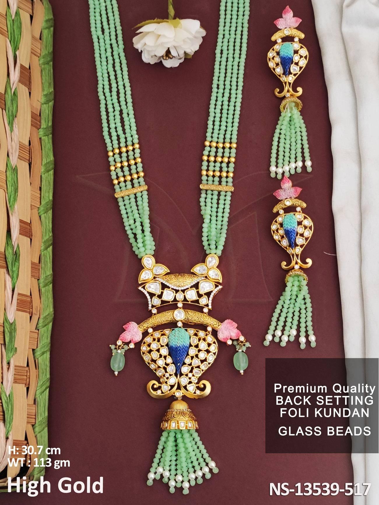 - Foli Kundan High Gold Polish Kundan Jewelry High Gold Polish Kundan Jewelry Premium Quality Glass Beades Long Necklace Set