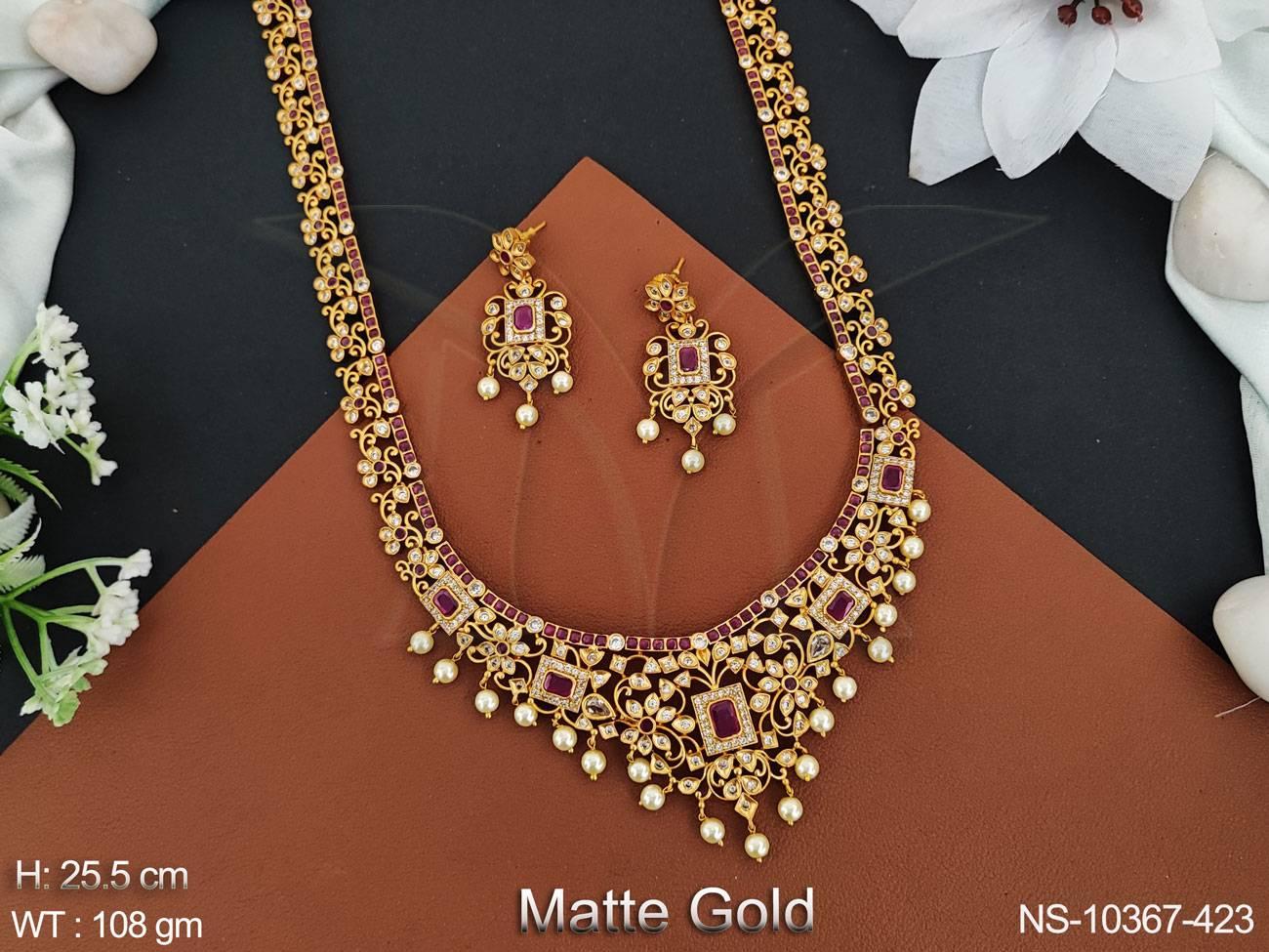 Matte Gold Polish Wedding Wear Beautiful Flower Design Kemp Haram Long Necklace Set