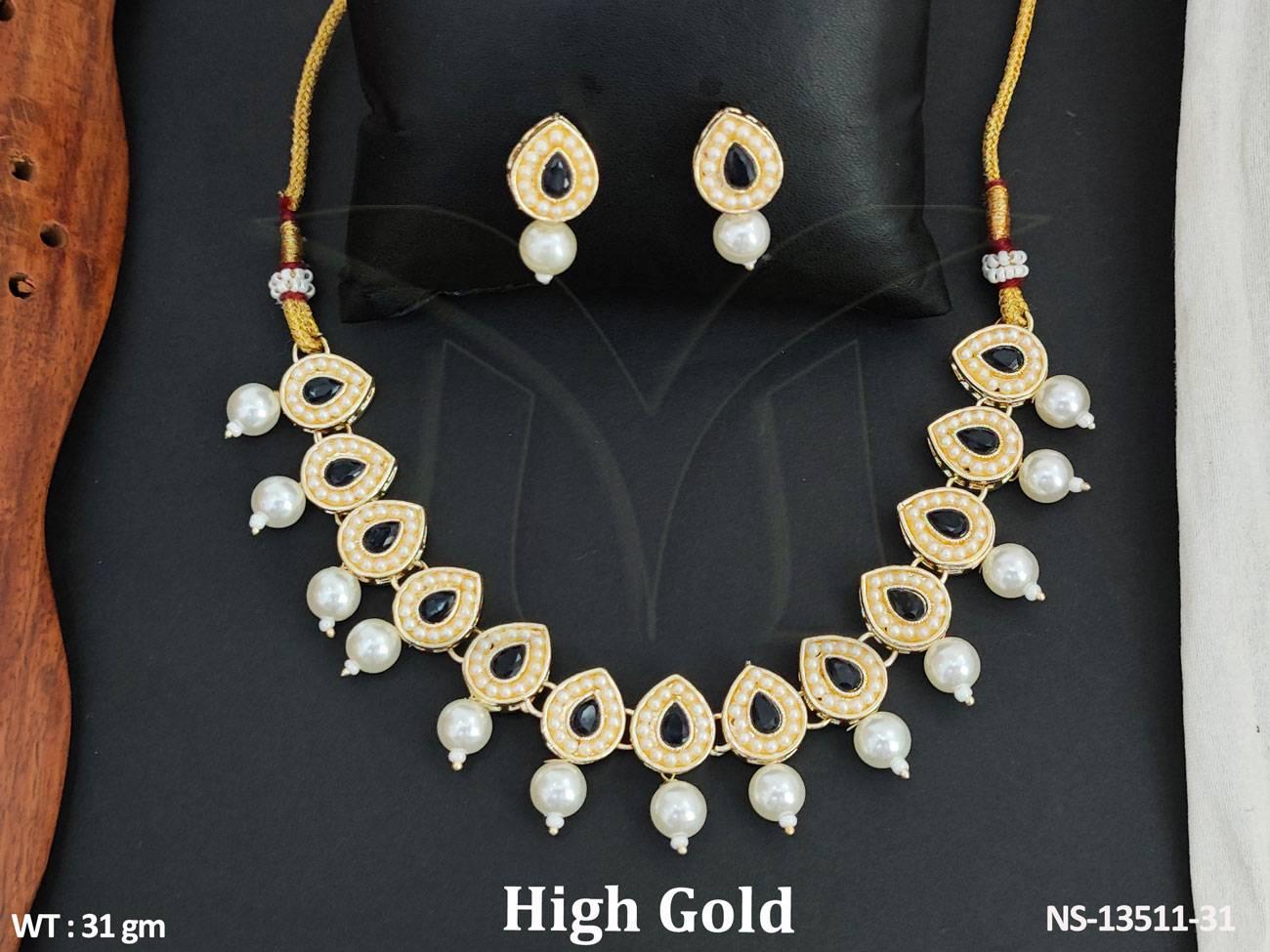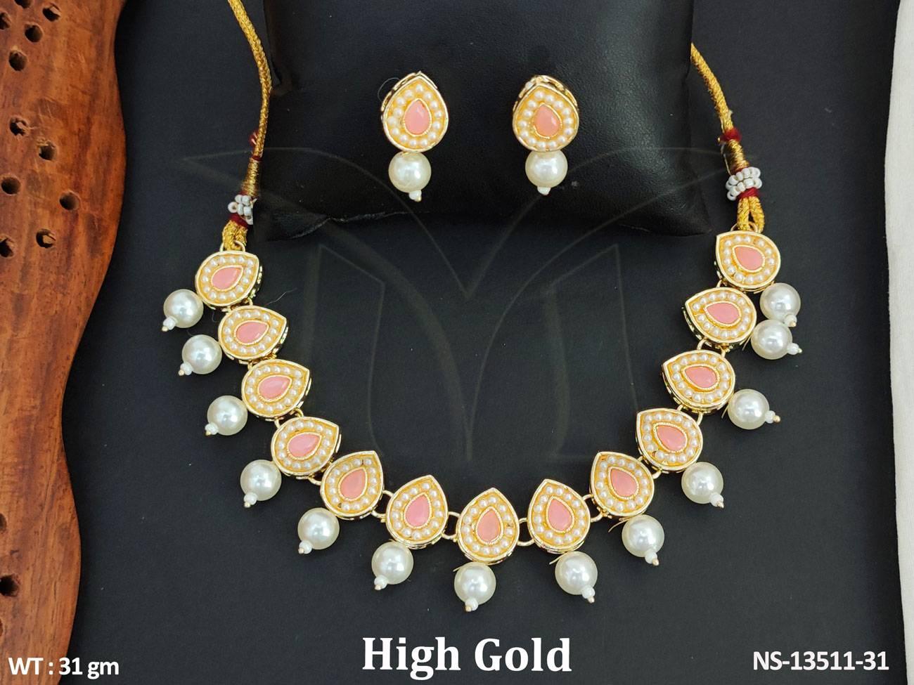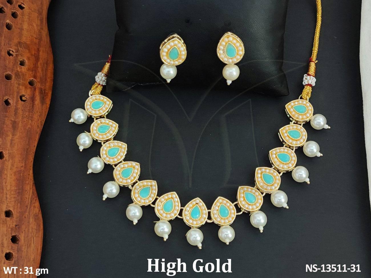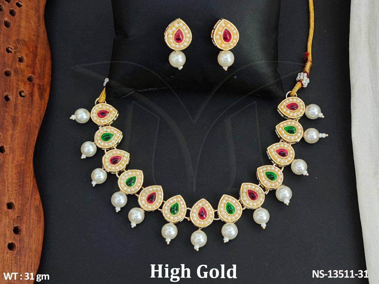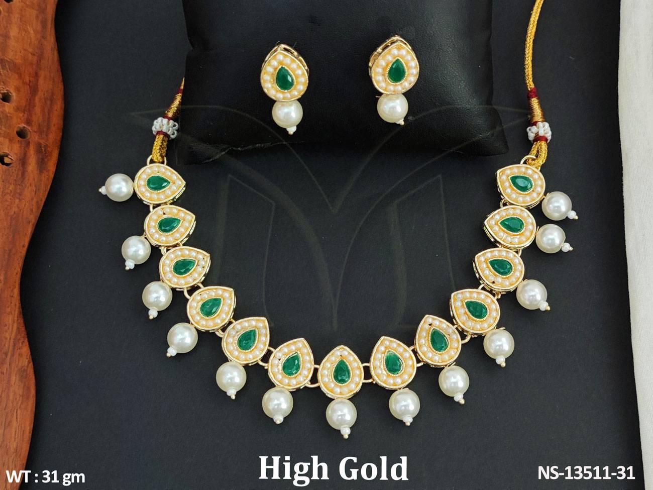 2. Antique Jewellery Oval Shape Stones High Gold Polish Party Wear Antique Necklace Set