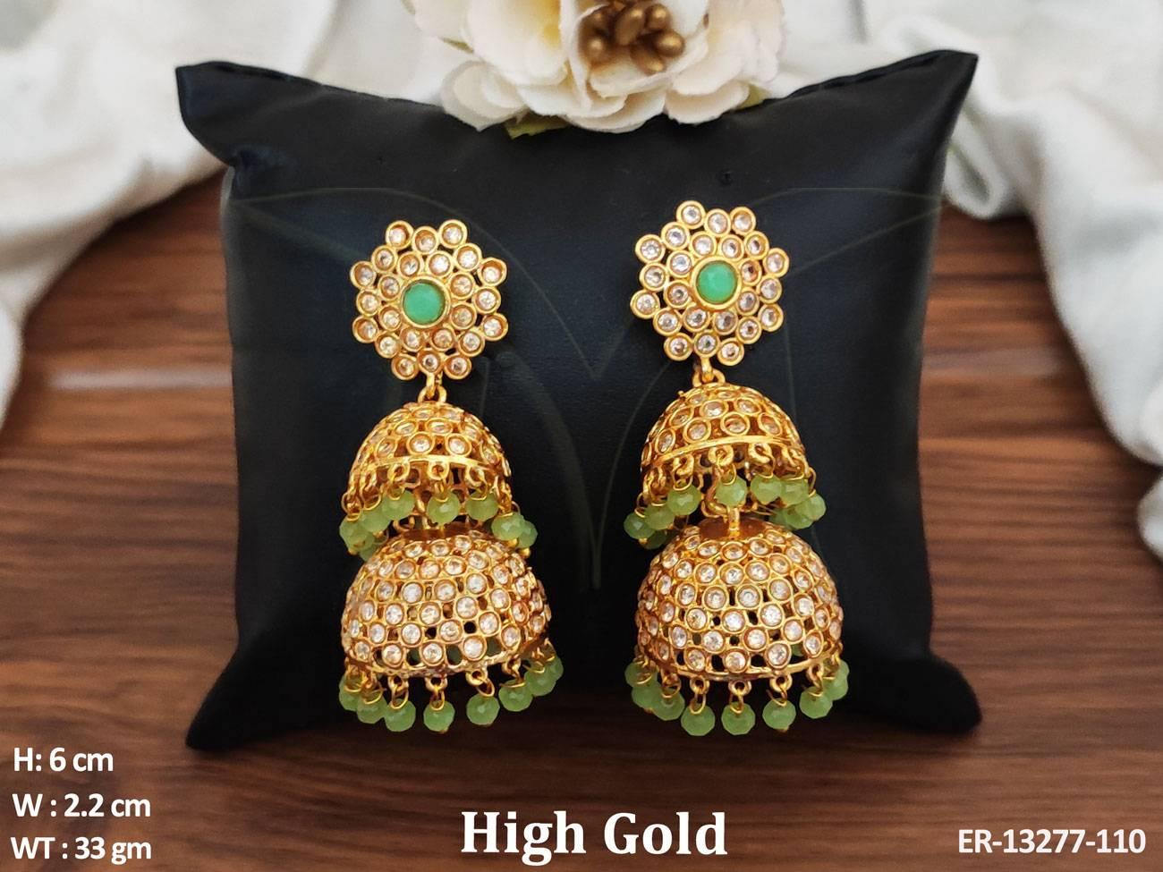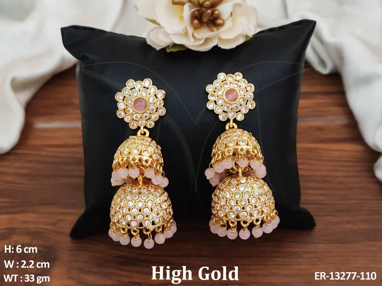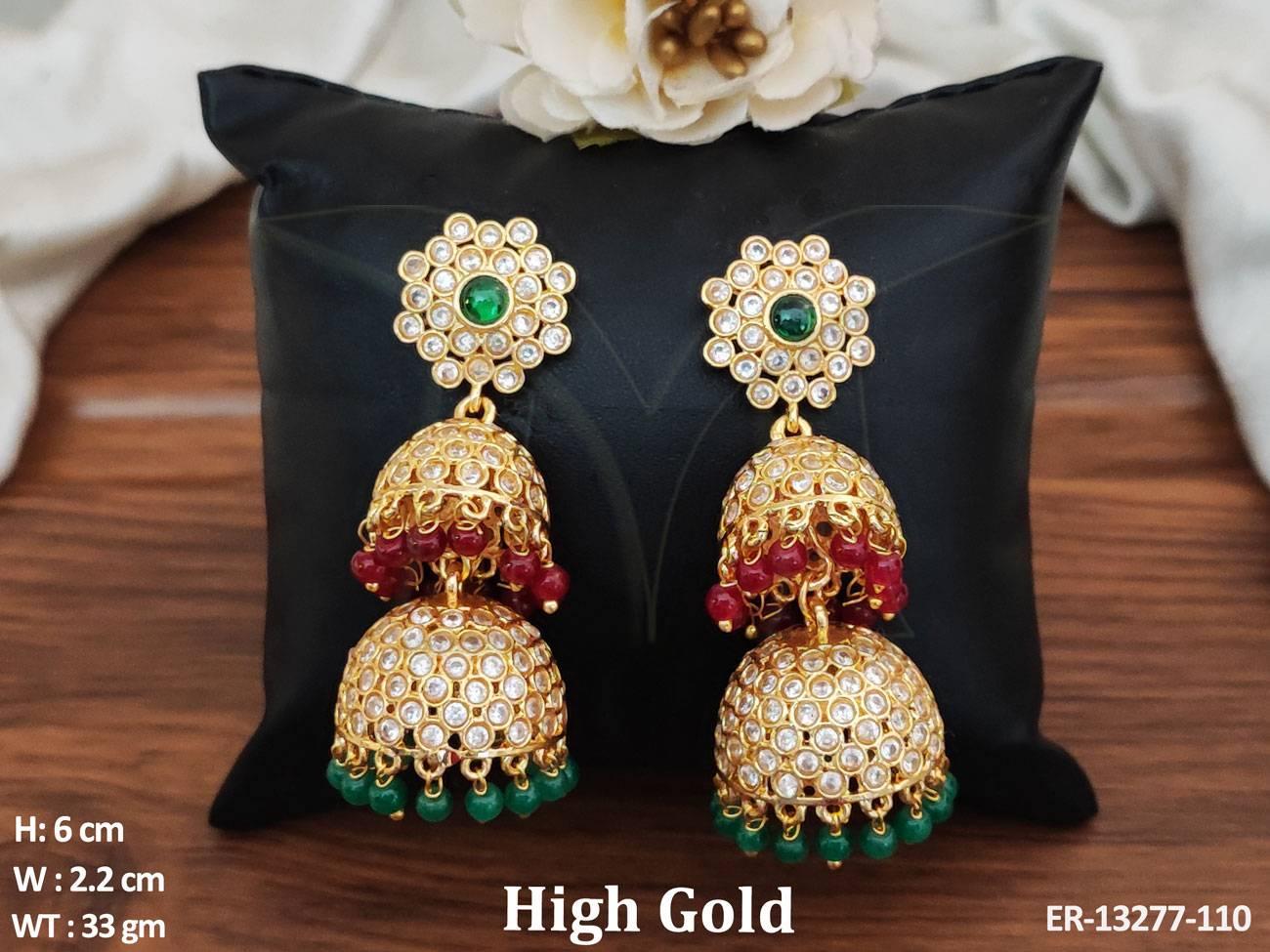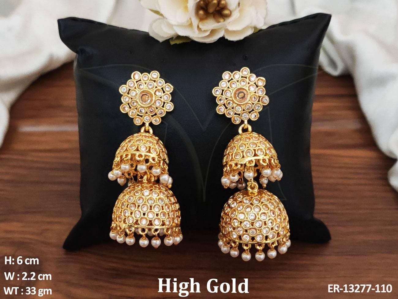 - Antique Jewellery Party Wear High Gold Polish Antique 3 Layer Jhumka Earrings
