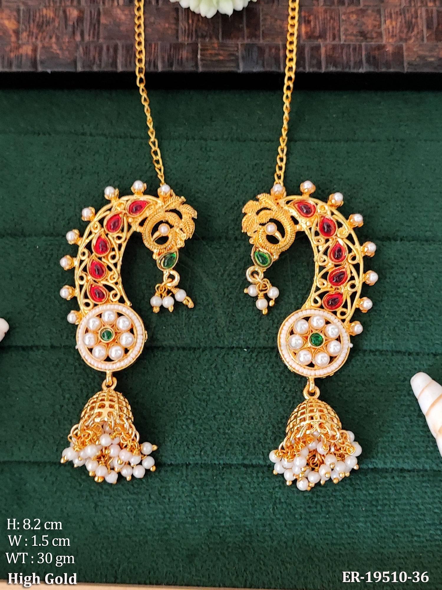 - Antique Peacock Pearl Jhumka Earrings High Gold Finish