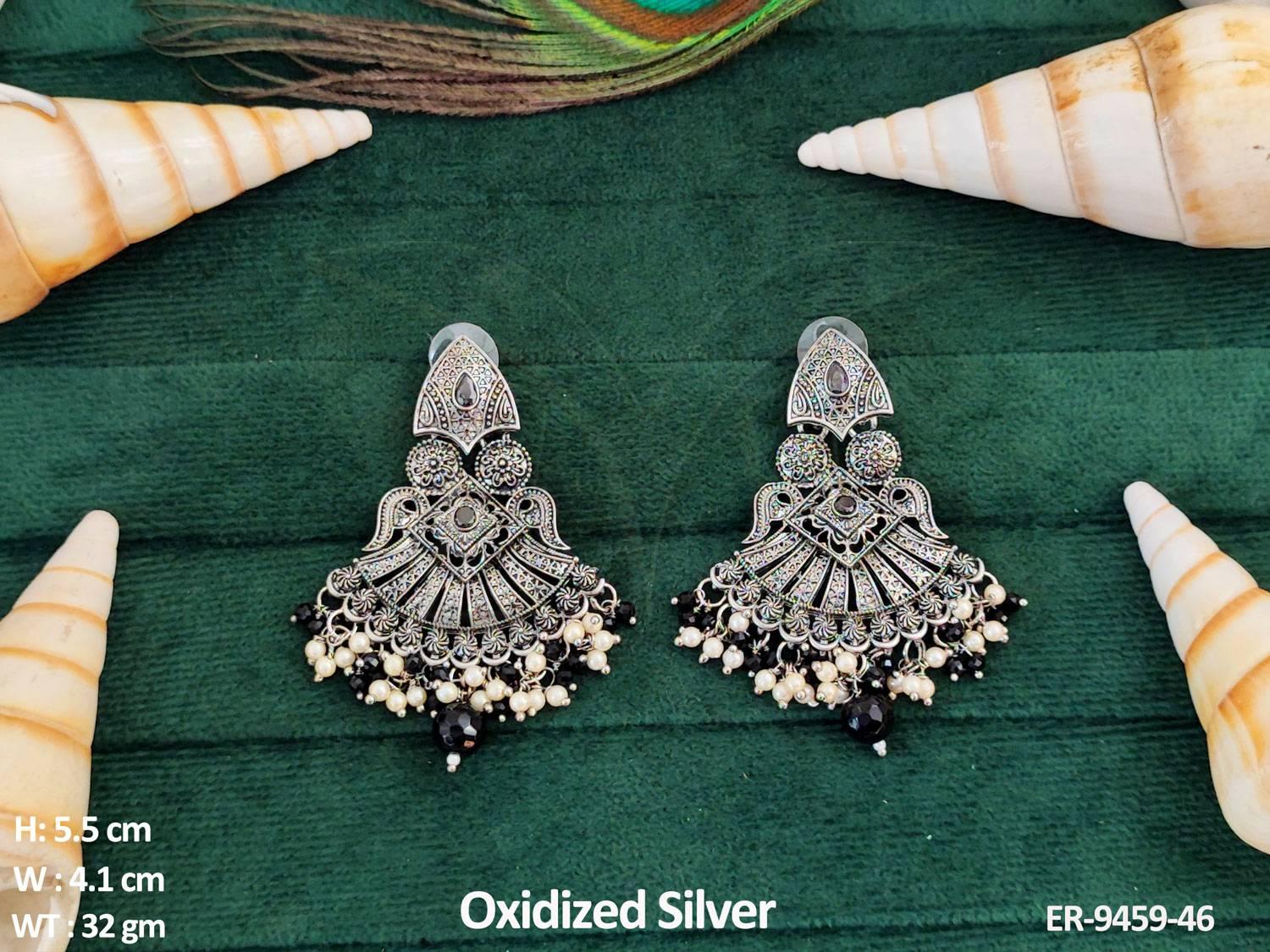 2. Beautiful Fancy Style Party wear Designer Culstered Pearl Tassels Oxidised Silver Earring