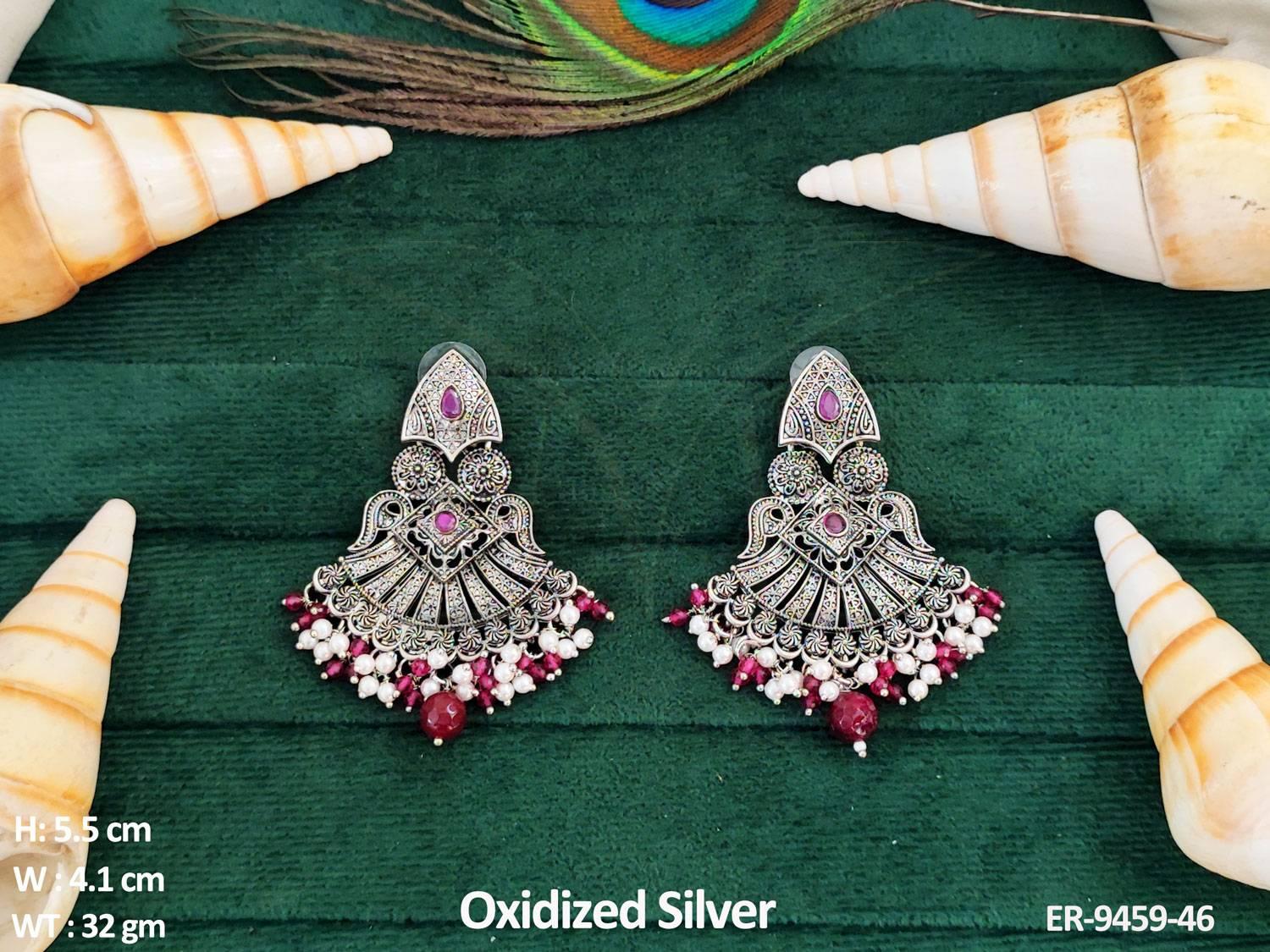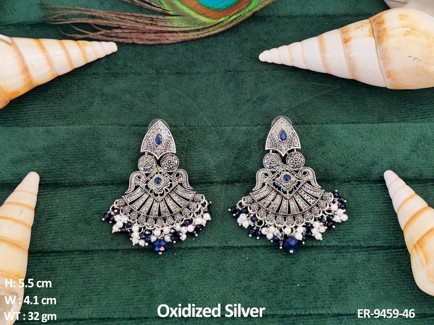 Beautiful Fancy Style Party wear Designer Culstered Pearl Tassels Oxidised Silver Earring