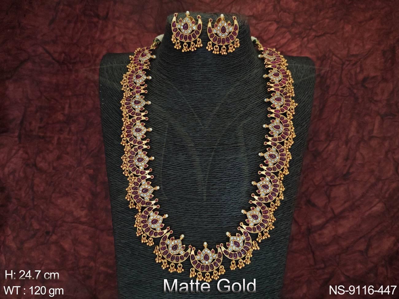 Beautiful Full Stones Fancy Designer Party wear Long Kemp Design Necklace Set