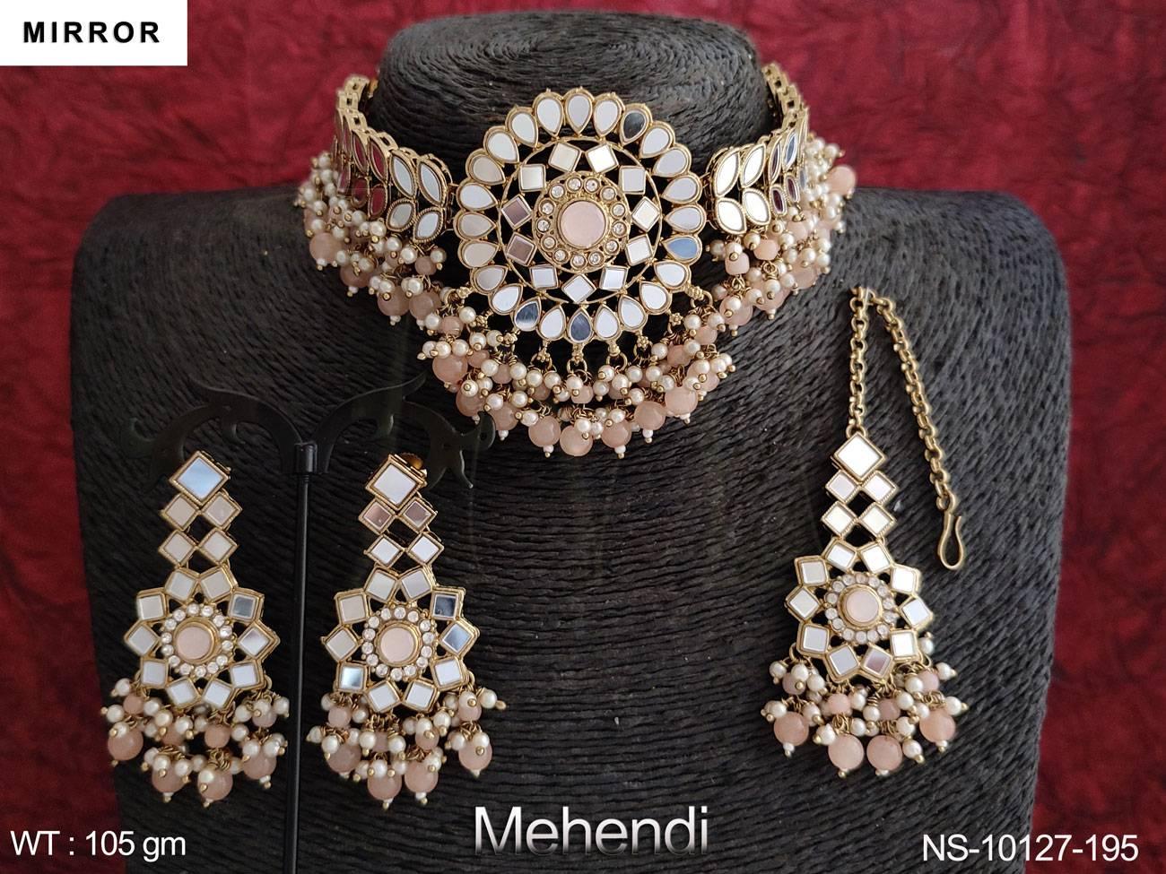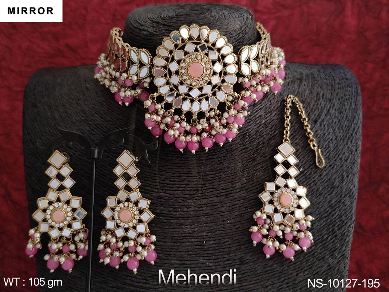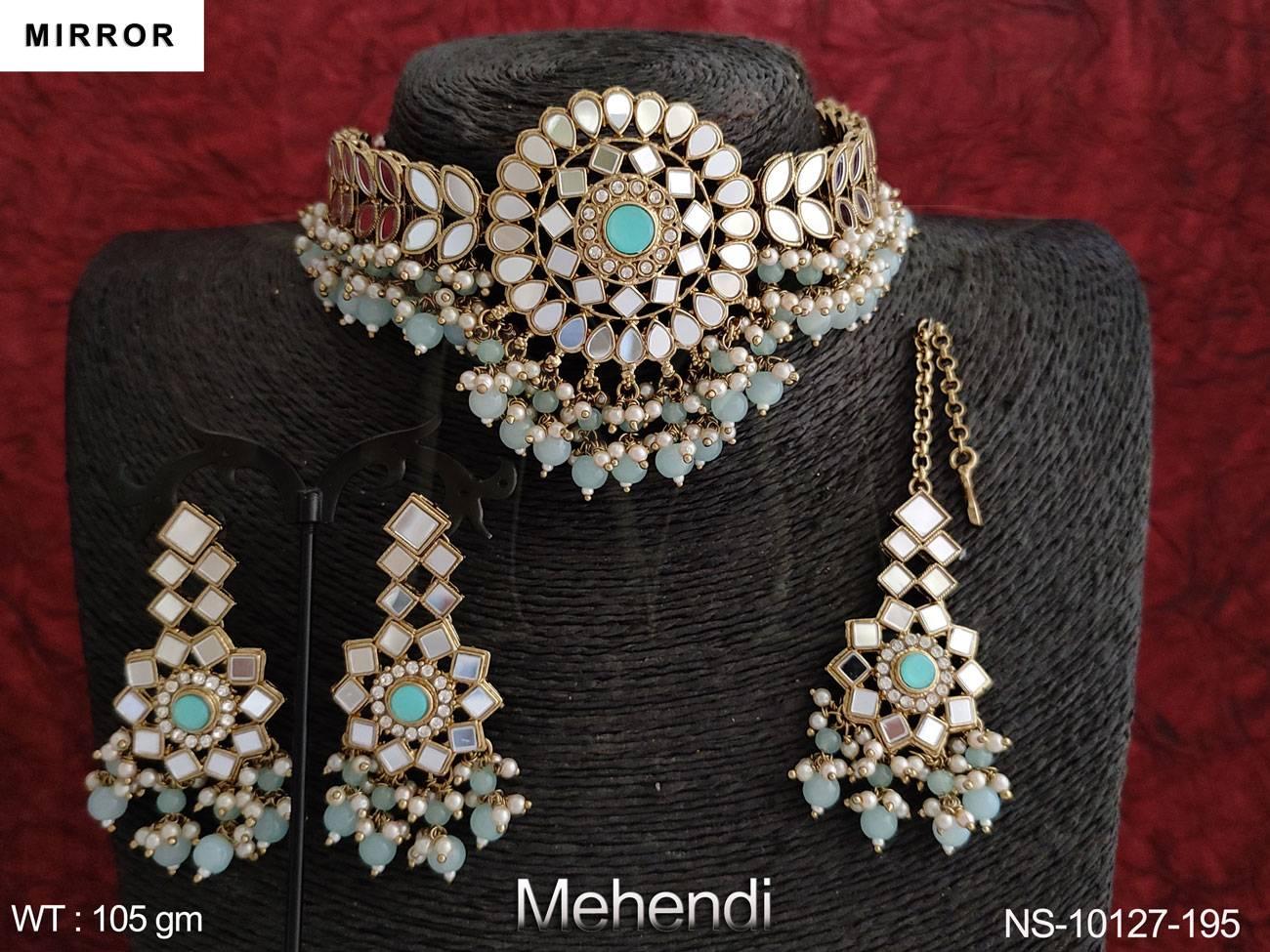 - Beautiful Mehendi Polish Designer Mirror Design choker Necklace Set