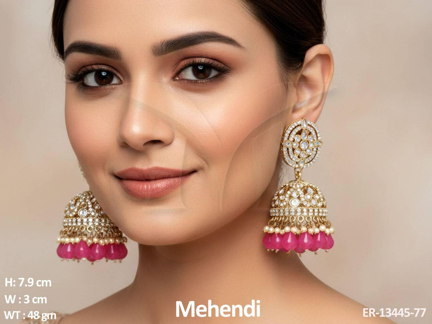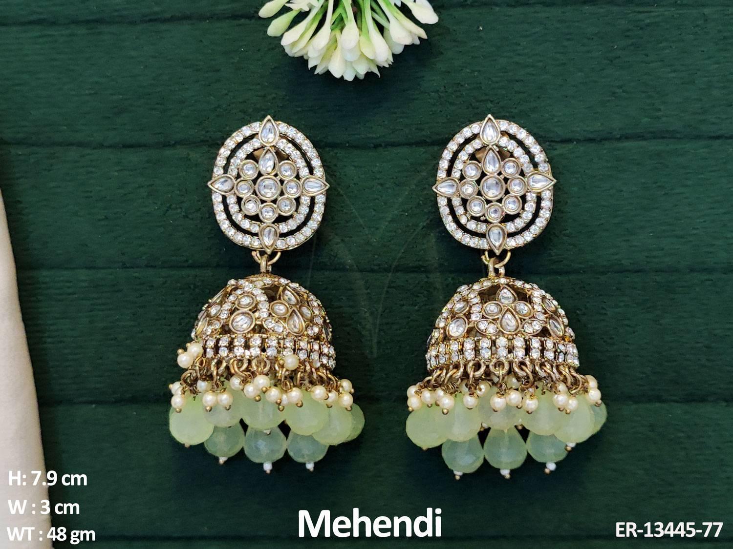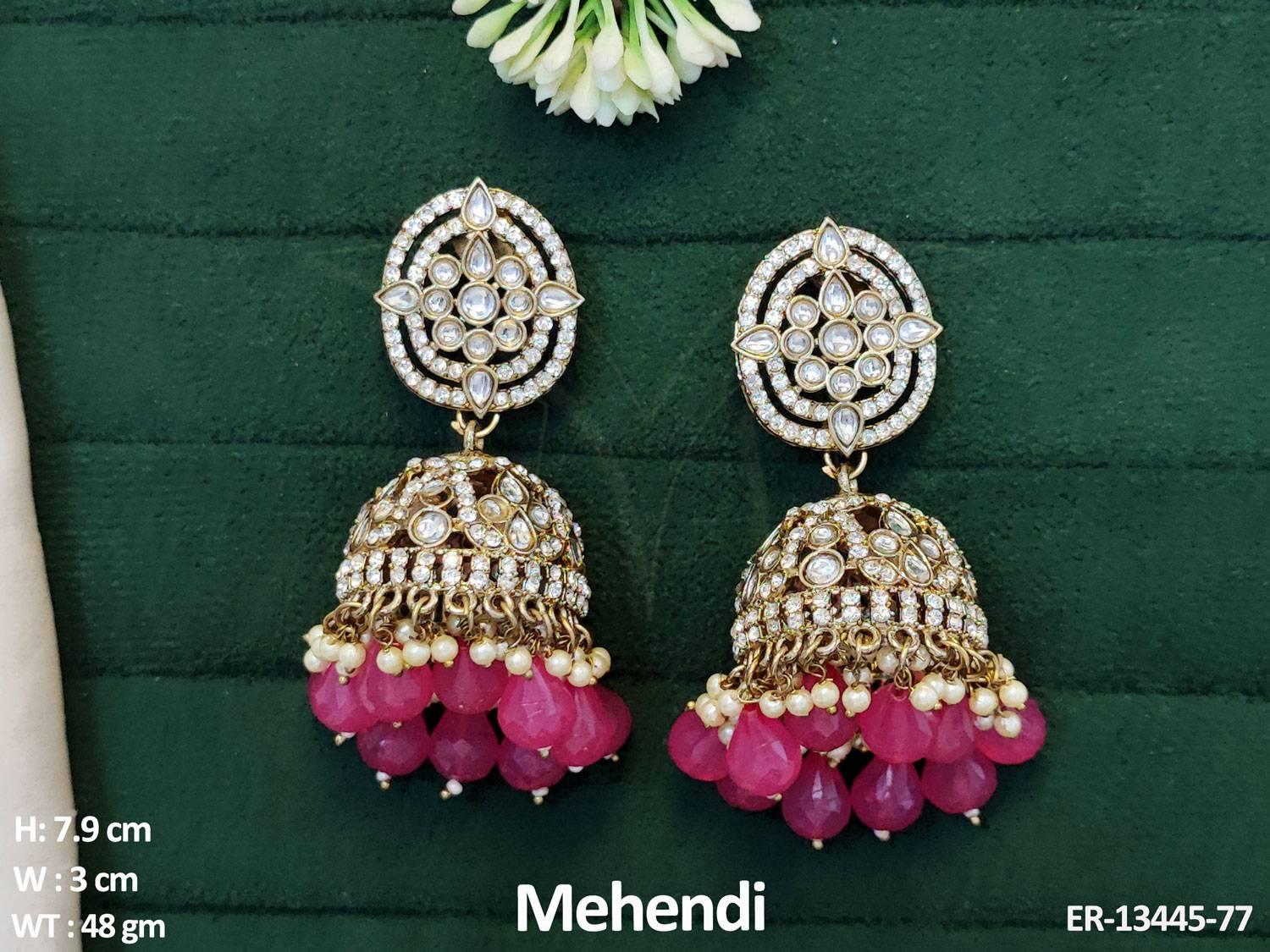 2. Clustered Pearl Kundan Stones Designer Fancy Style Party wear Kundan Long Jhumka Earring