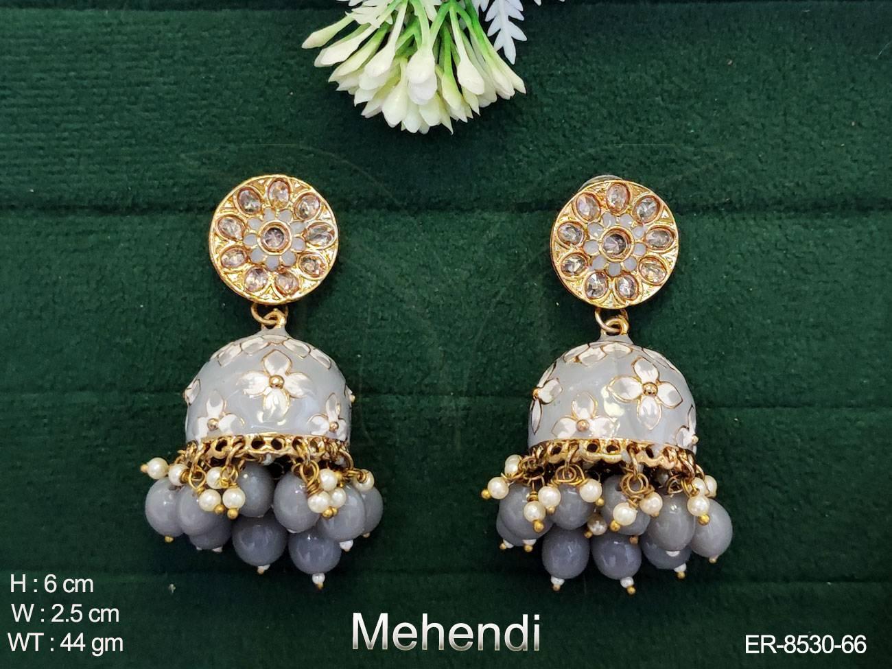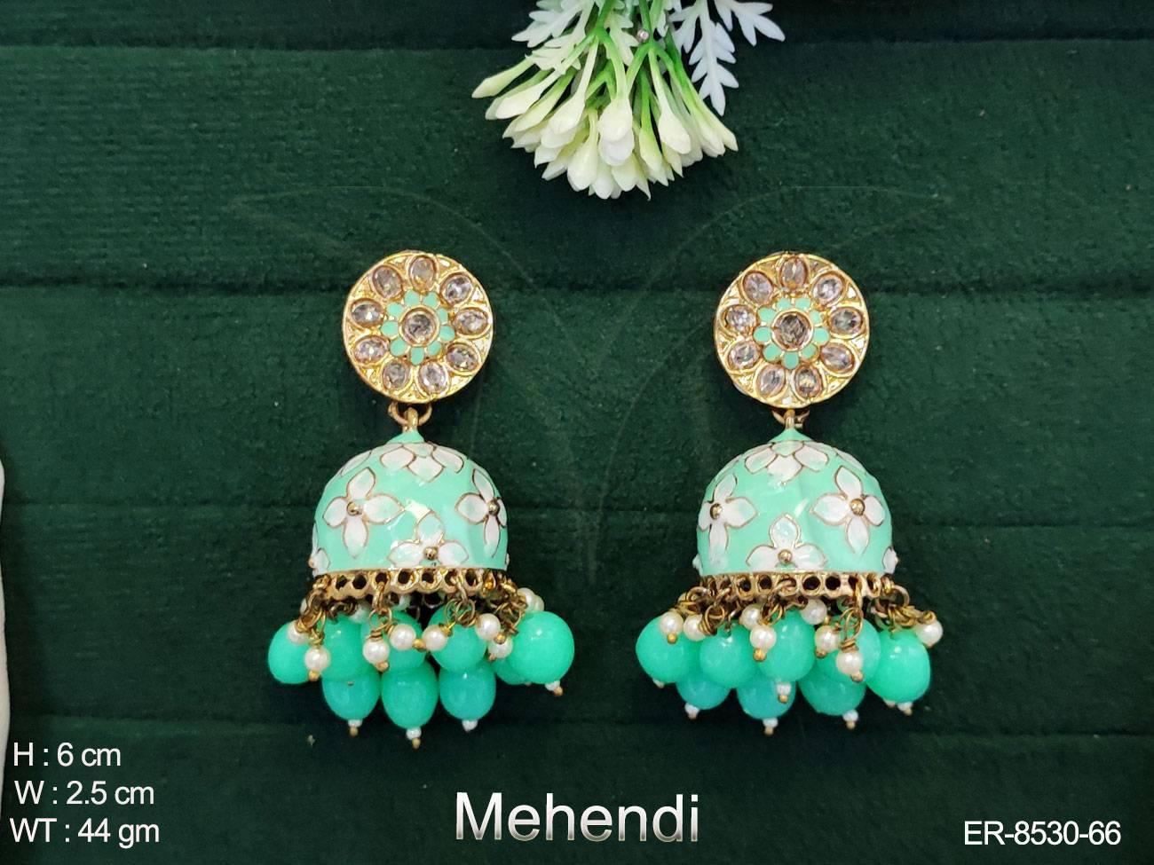 - Designer Antique Mehendi Polish MeenaKari Work Beautiful Fashion Party wear earring Jhumka