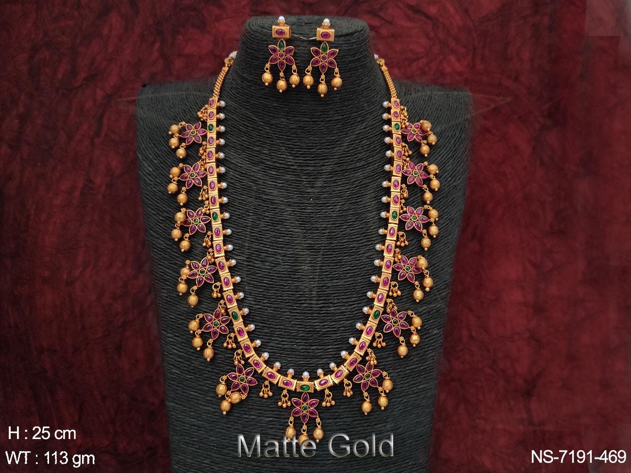 - Designer Beautiful Kemp Jewelry Fancy stylish Matte Gold Polish Long Necklace Set