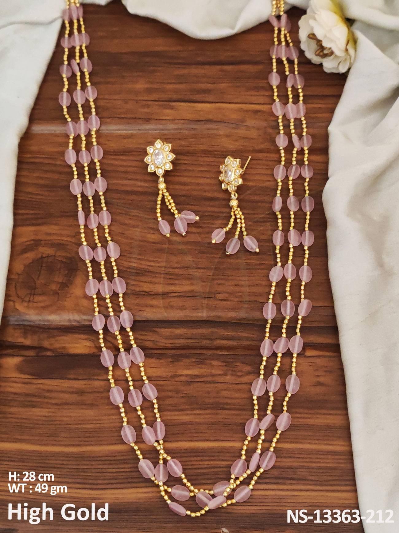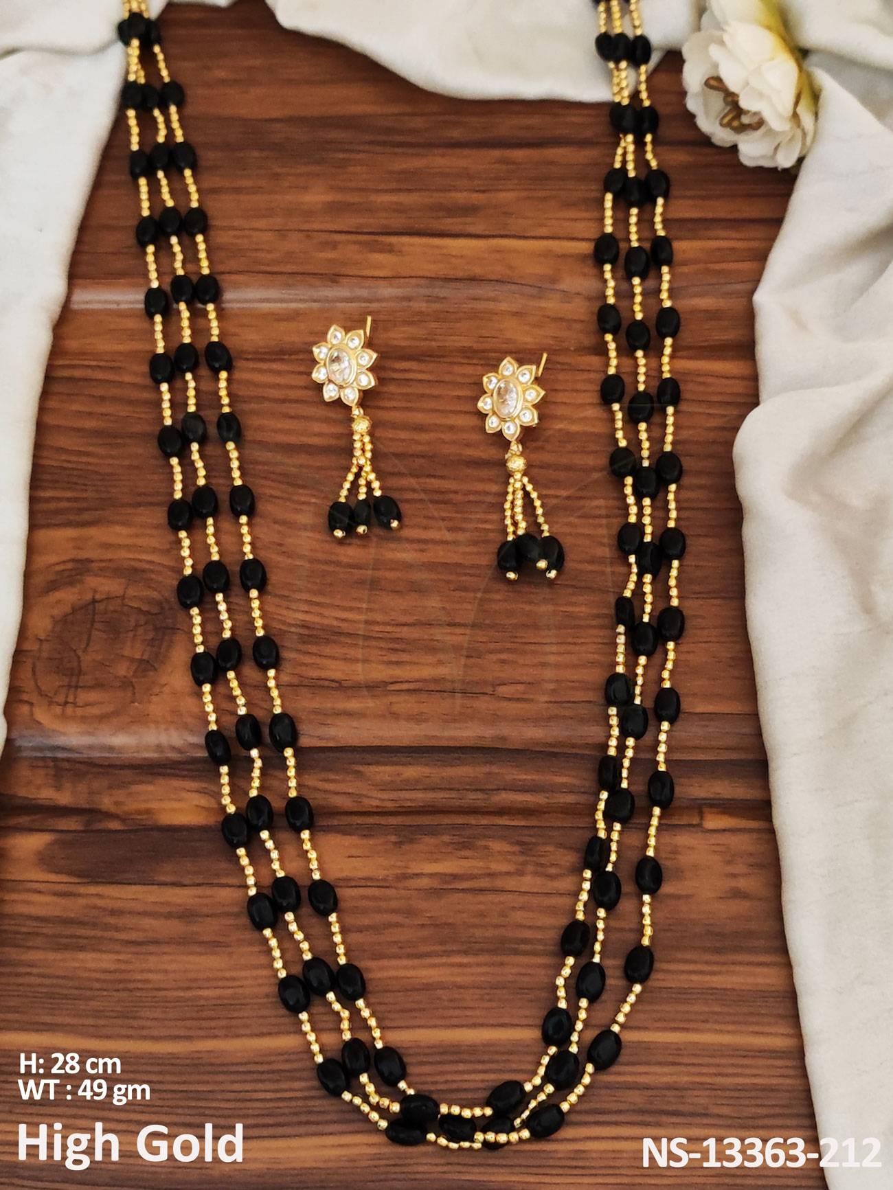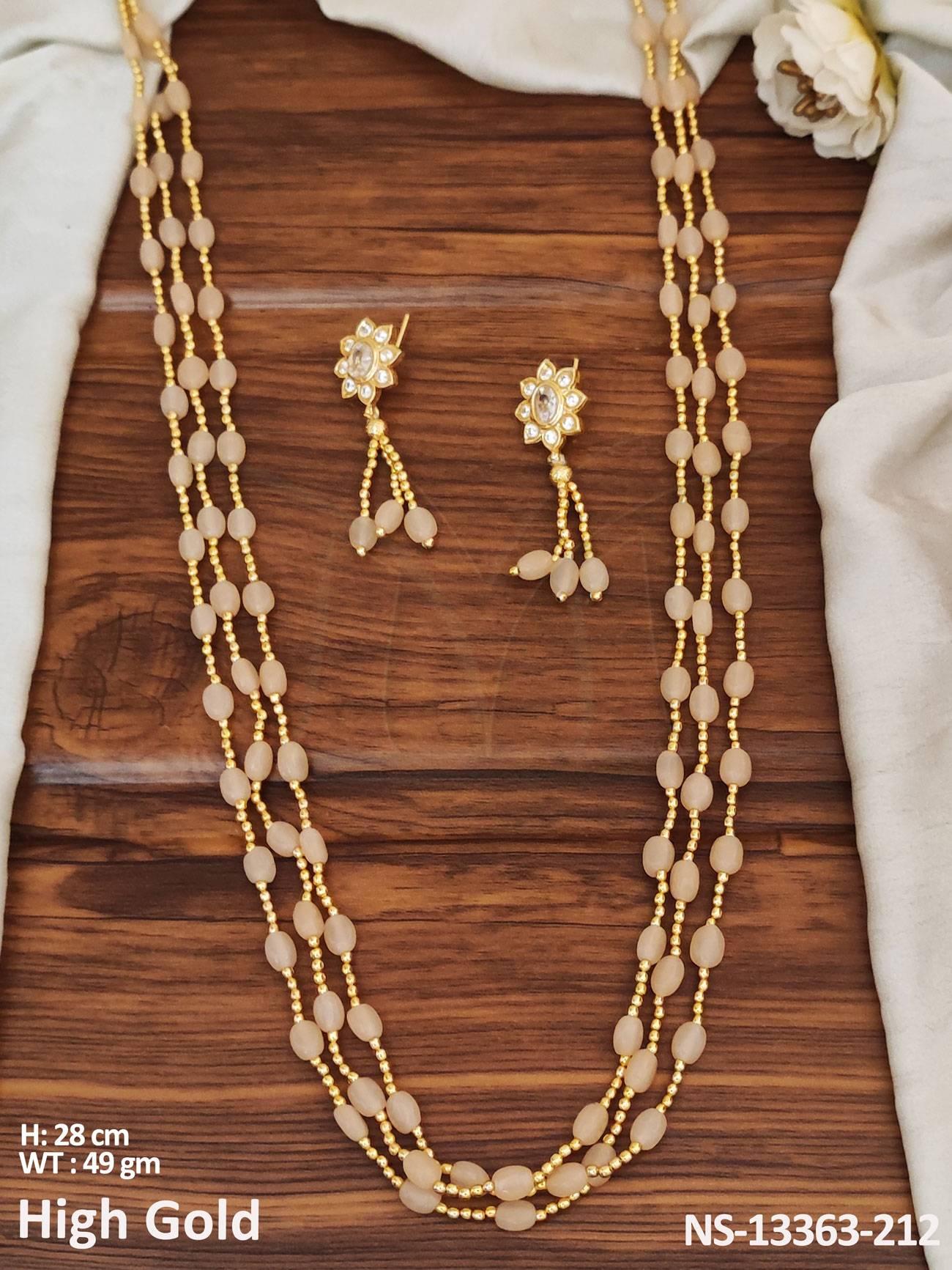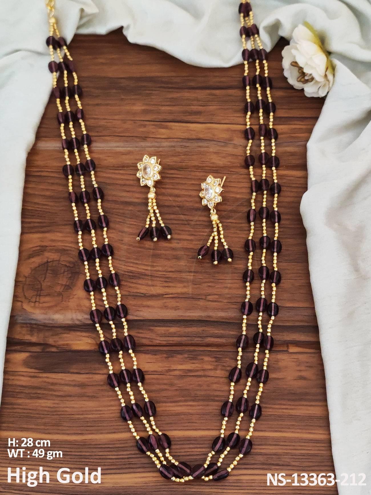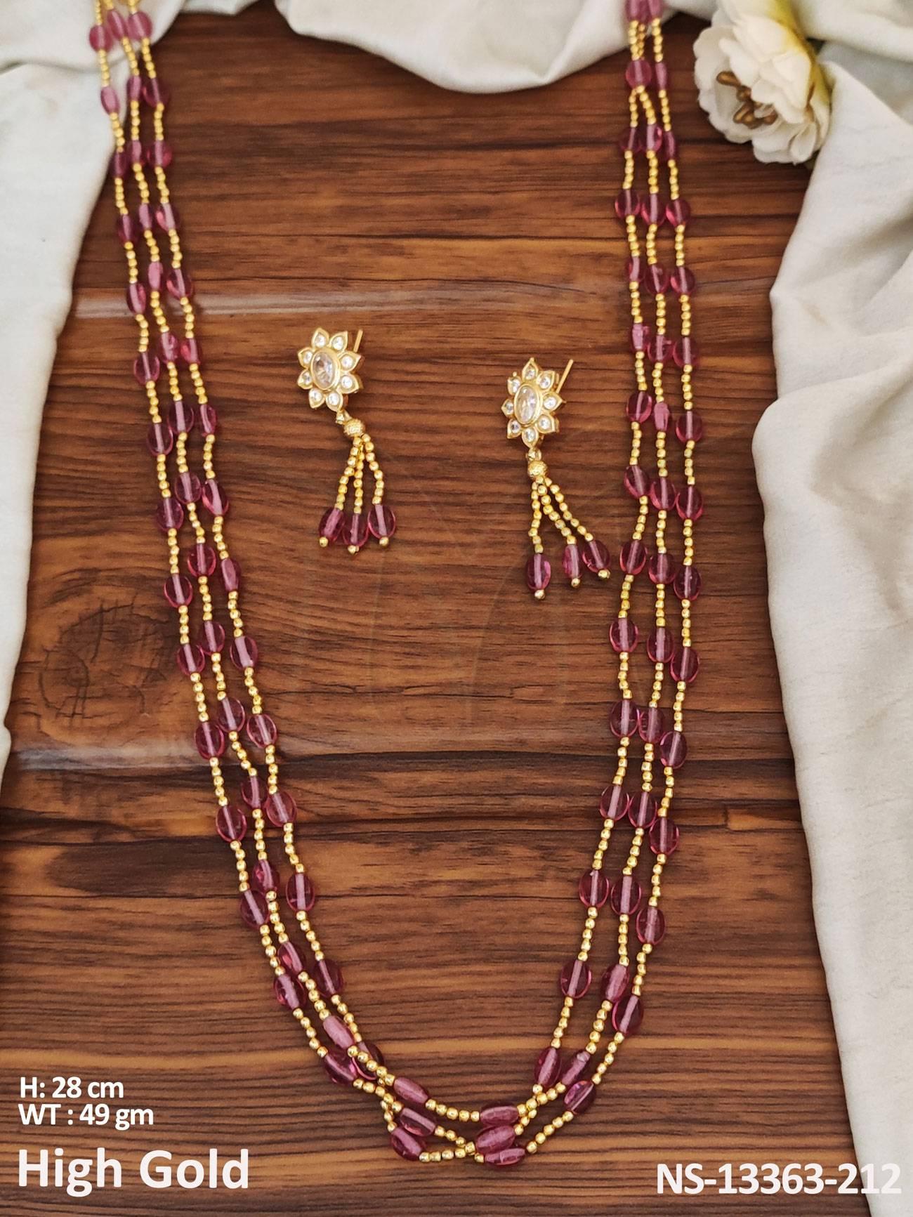 - Designer Wear High Gold Polish Antique Long Necklace Set