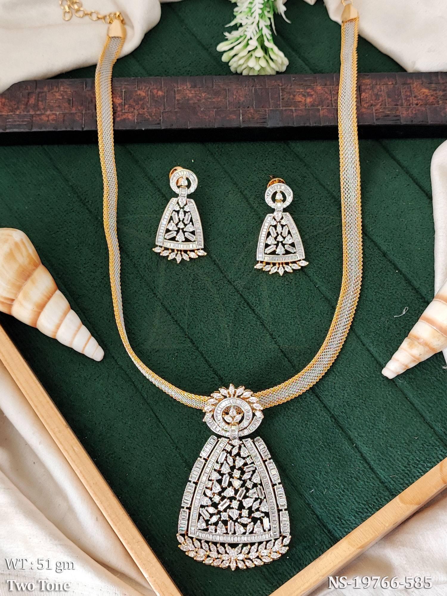 2. Elegant AD Two Tone Necklace Set with Designer Earrings