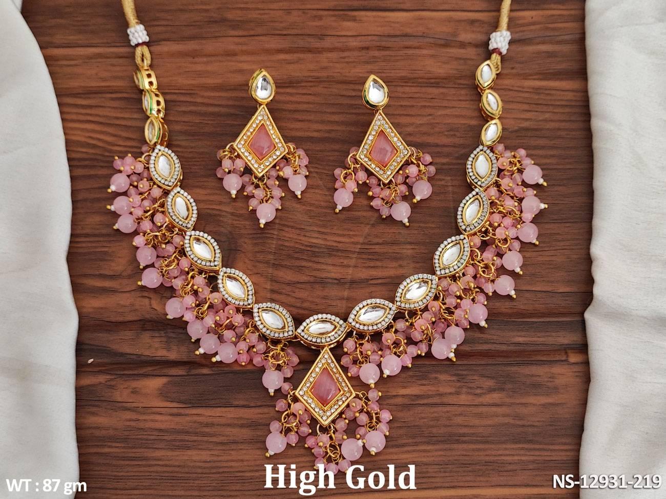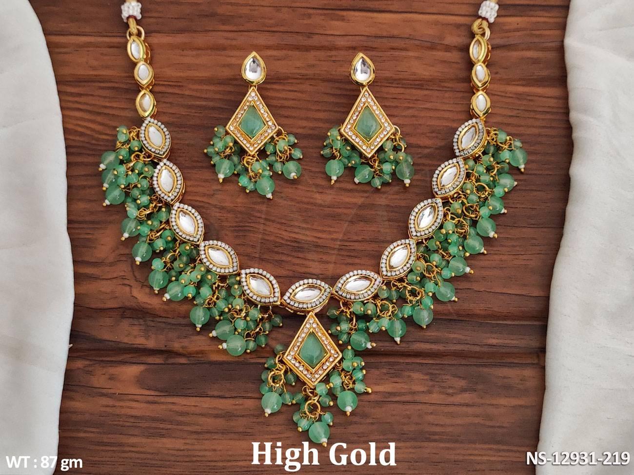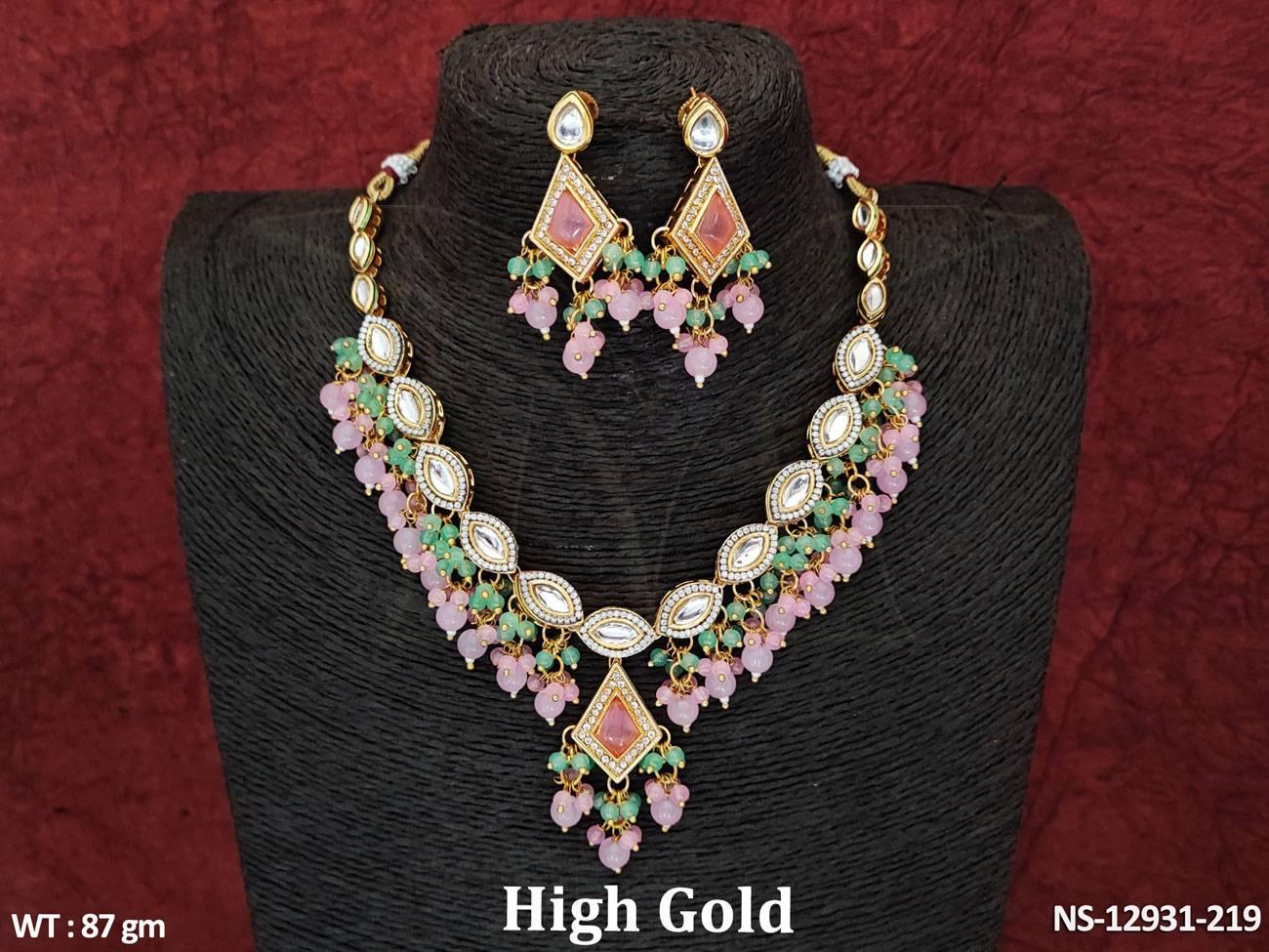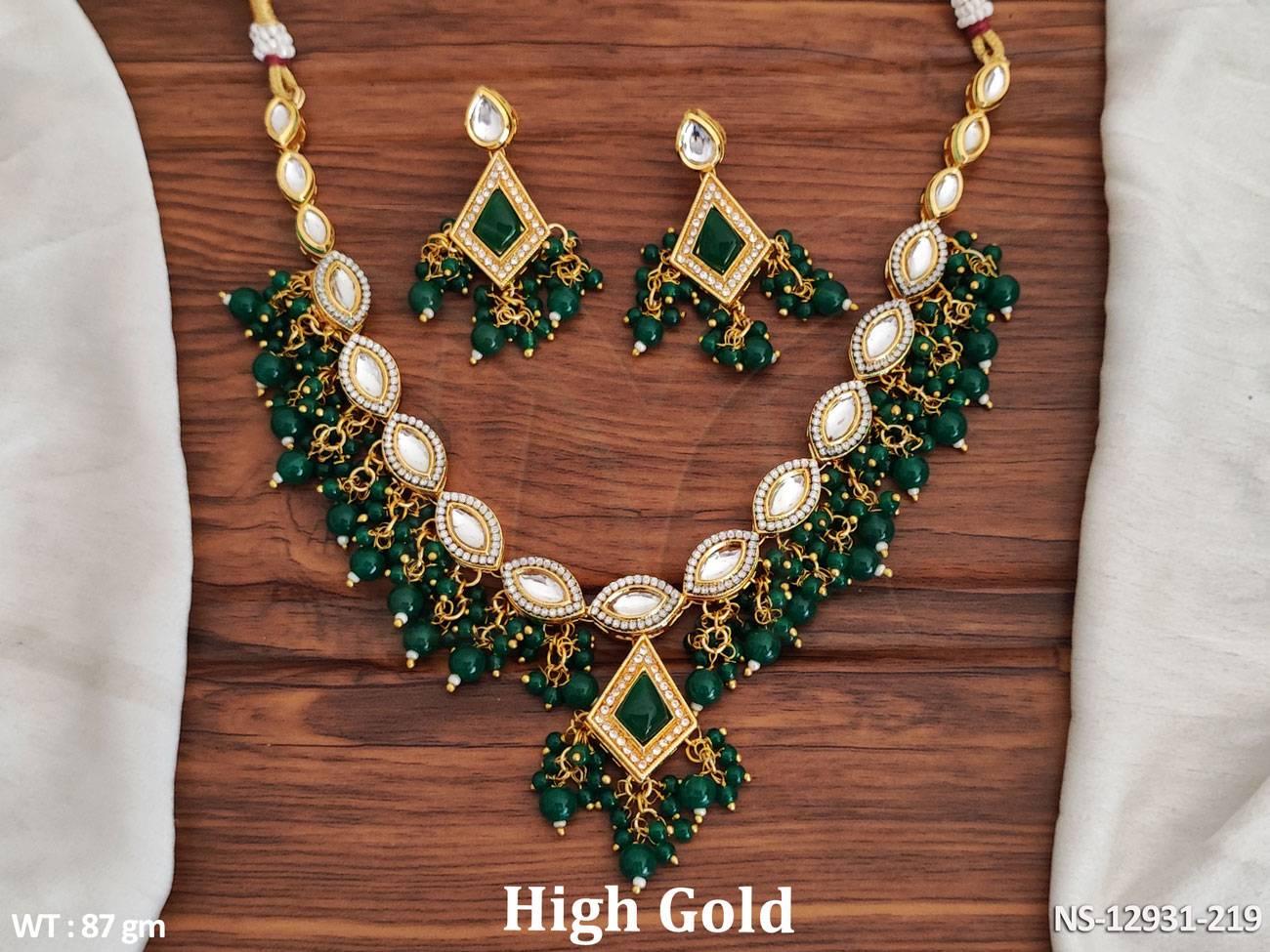 Fancy Design High Gold Polish Beautiful Kundan Stones Kundan Jewellery Short Necklace Set