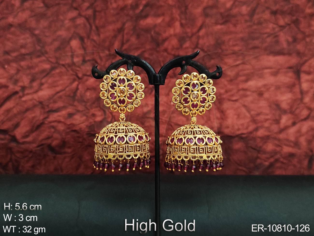- Fancy Design High Gold Polish Beautiful Party wear Antique Jewellery Jhumka Earring
