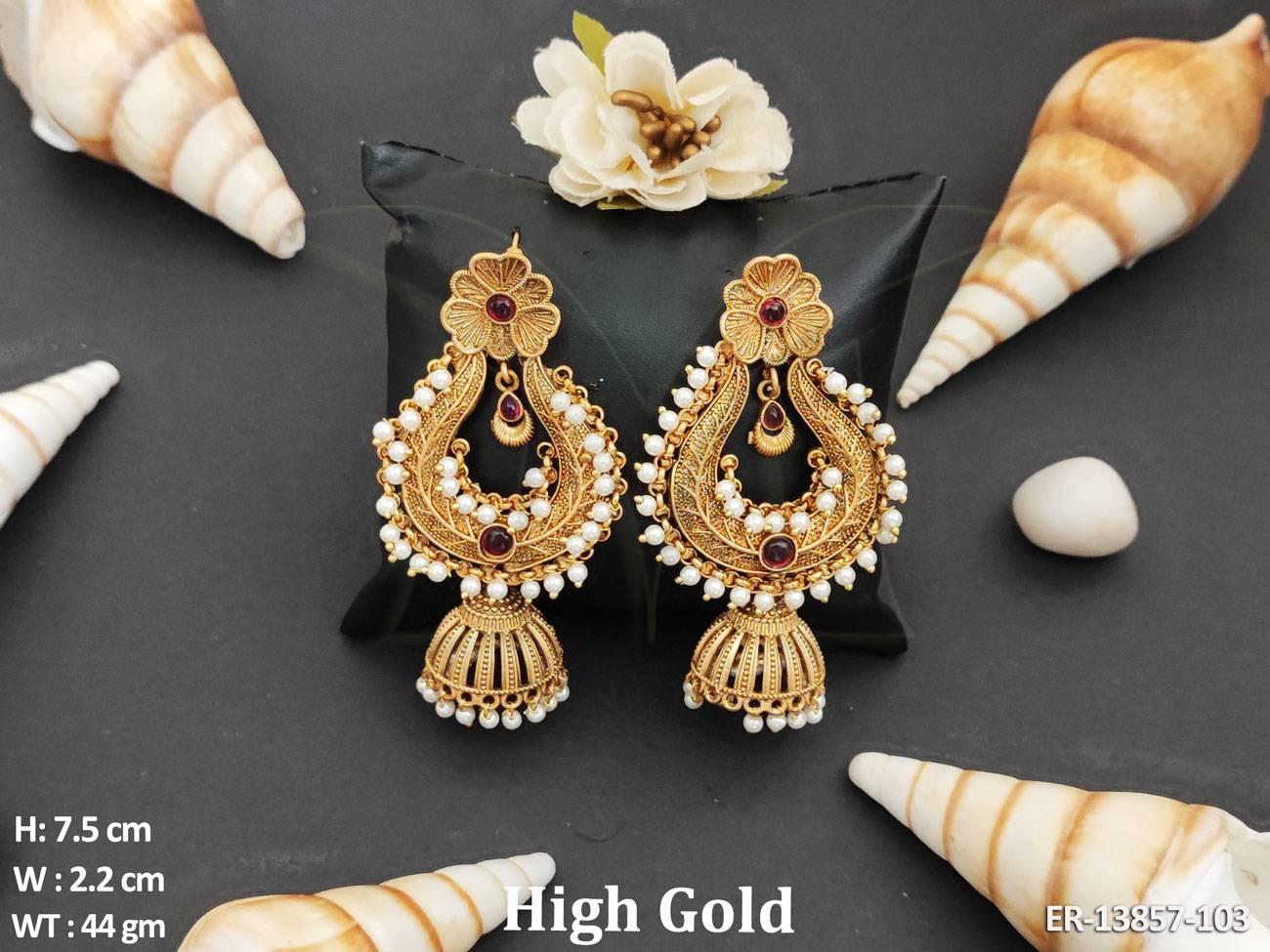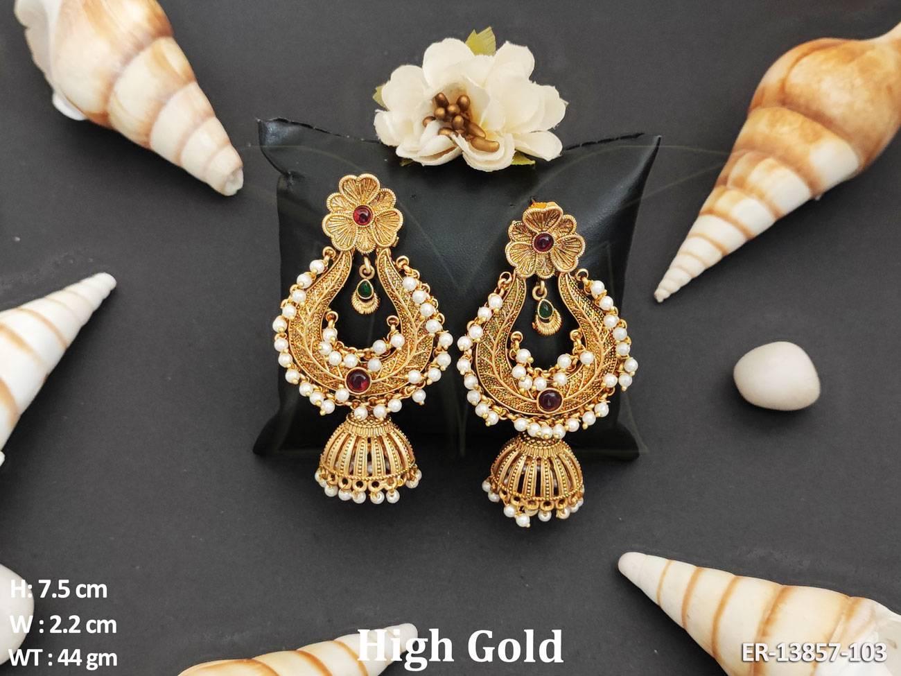 - Fancy Design Party wear Beautiful Antique Designer High Gold Polish Antique Jhumka Earring