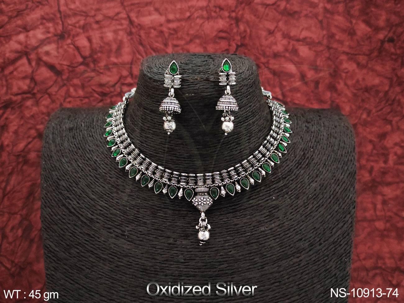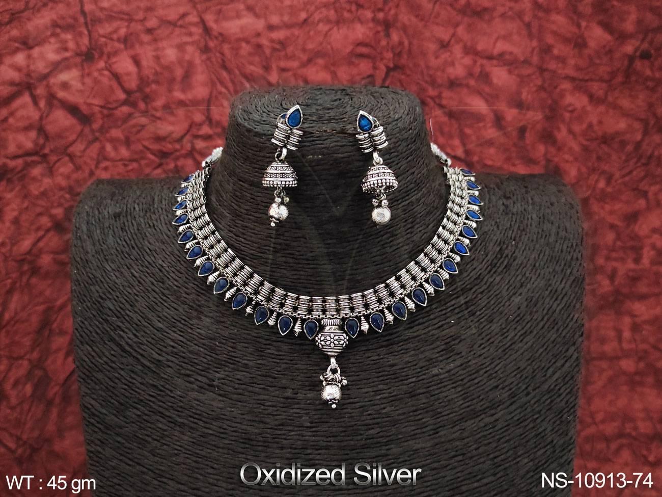 Fancy Design Party wear Beautiful Oxidised Silver Polish Short Oxidised Jewellery Necklace Set