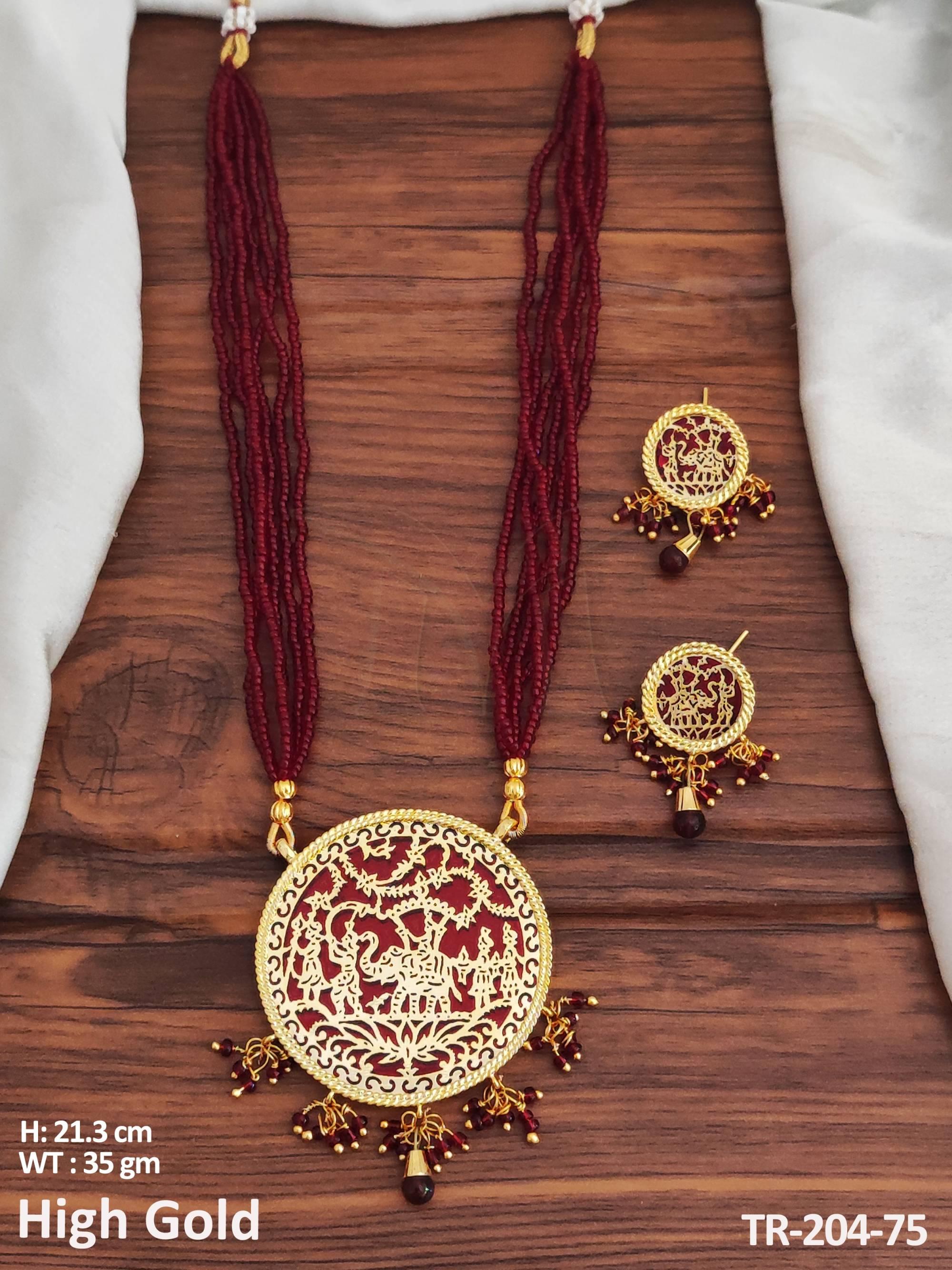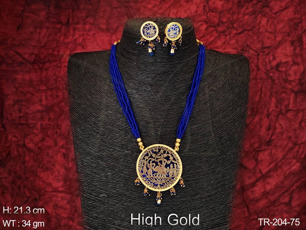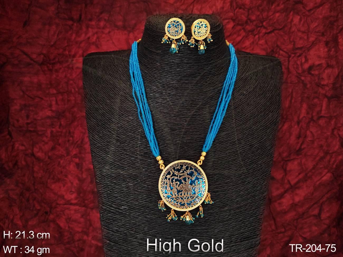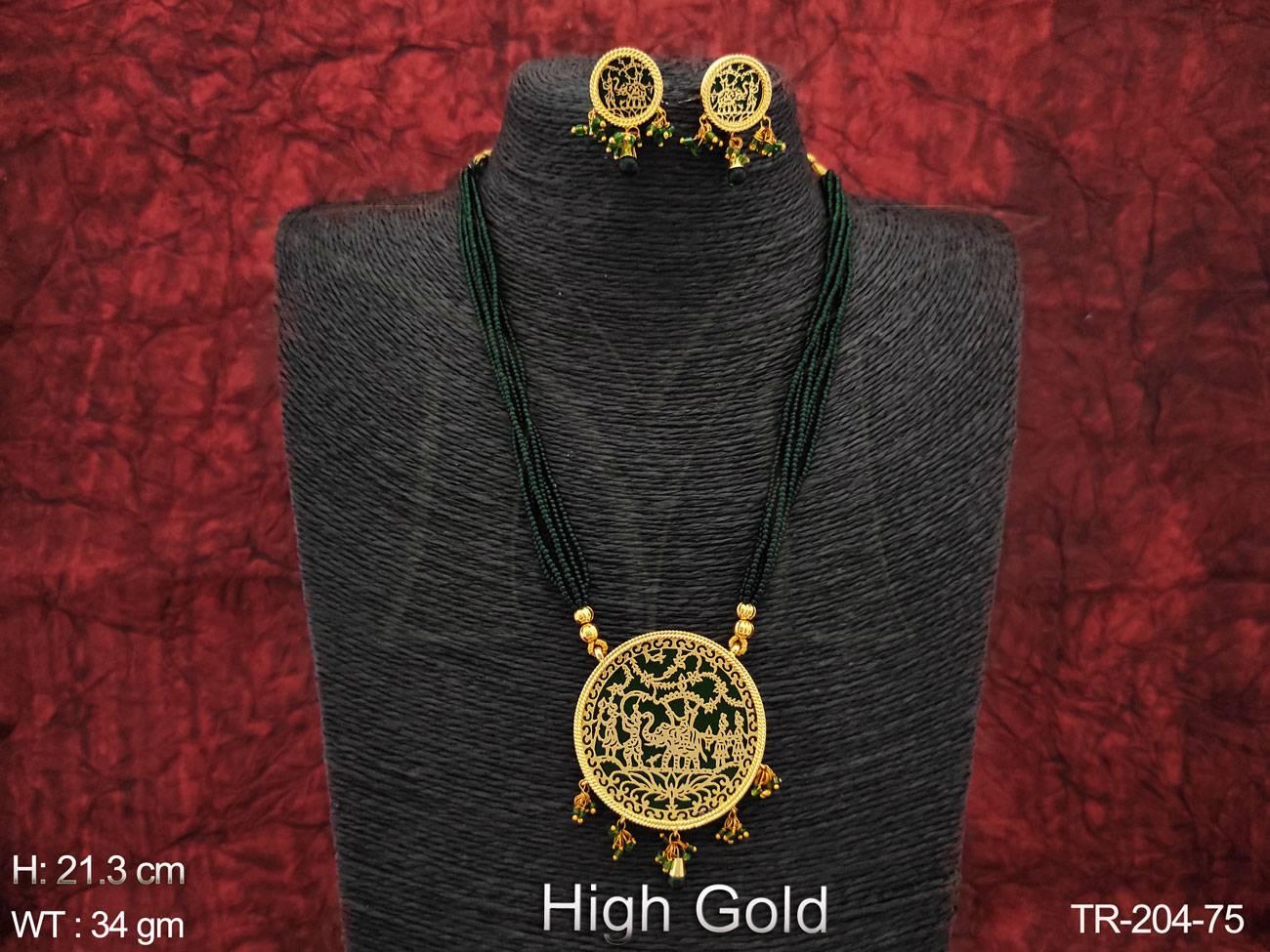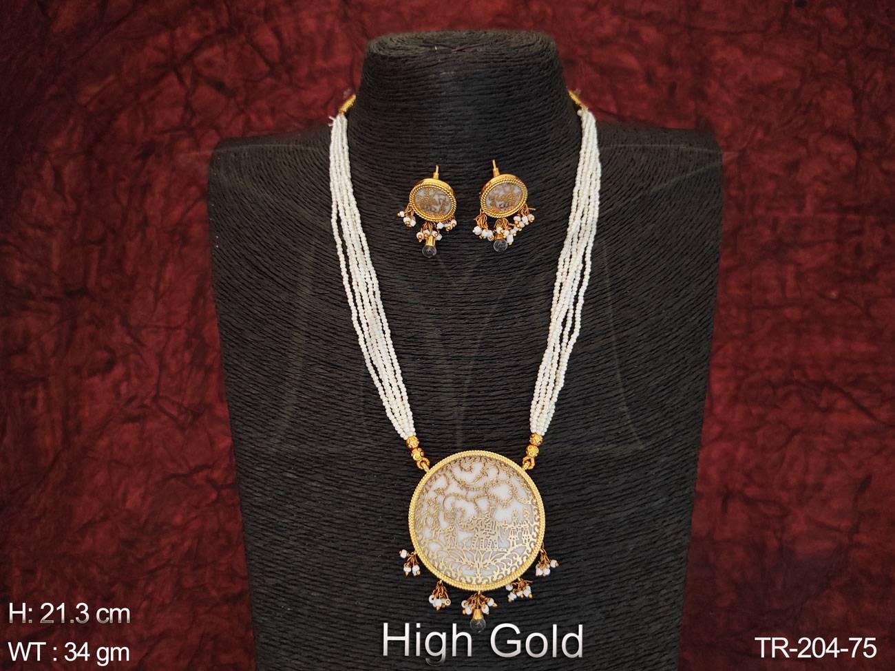 - High Gold Polish Designer Fancy Style Beautiful Long Party wear Thewa Necklace Set