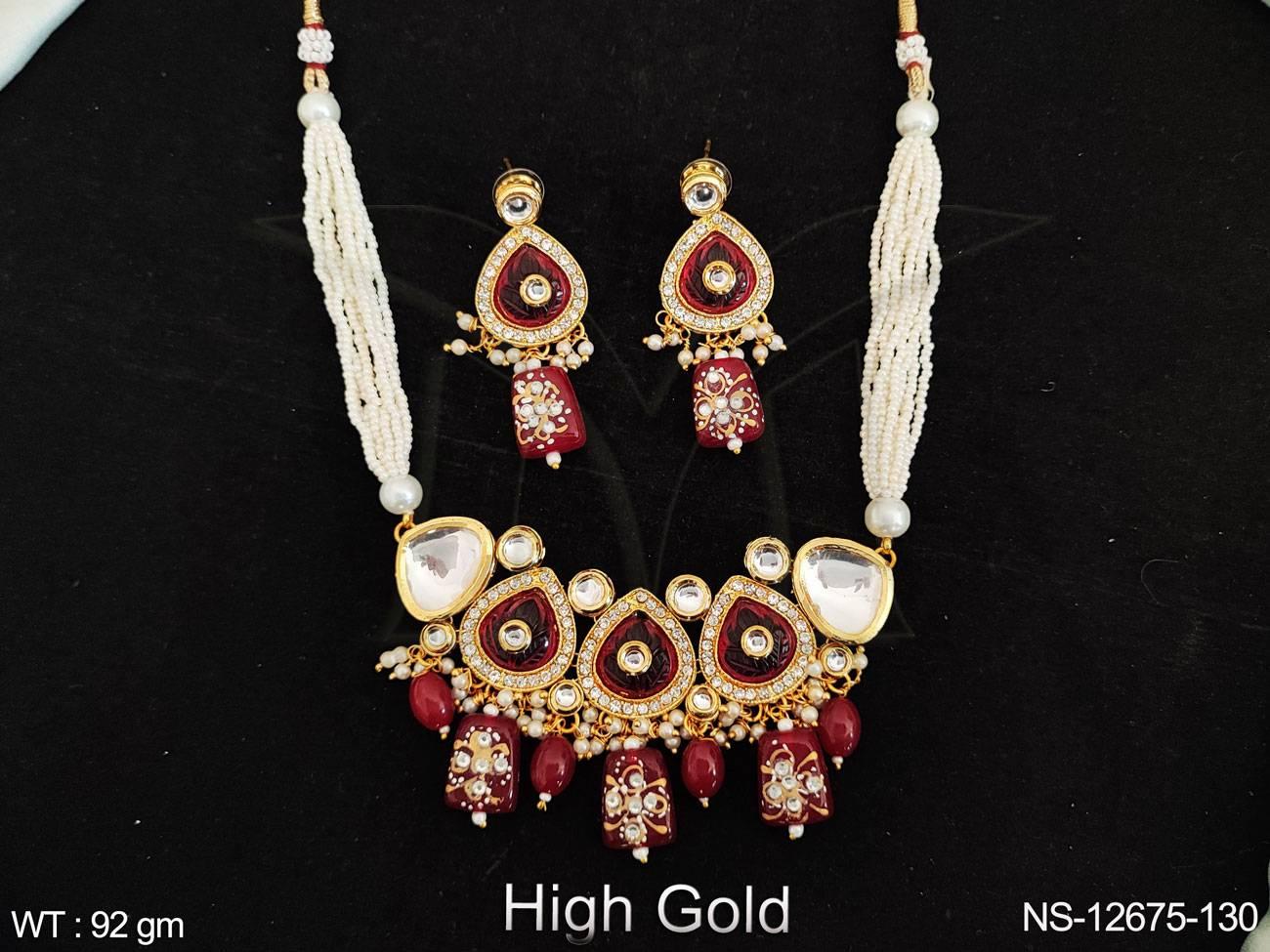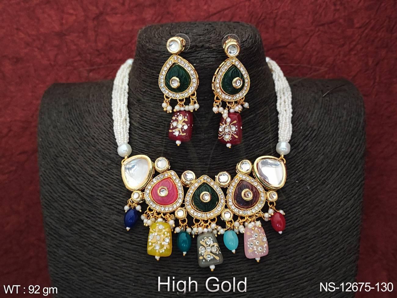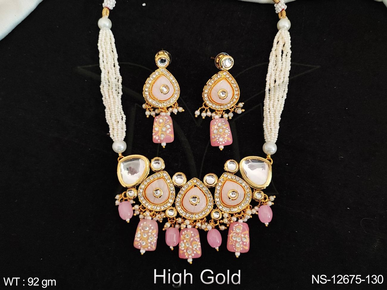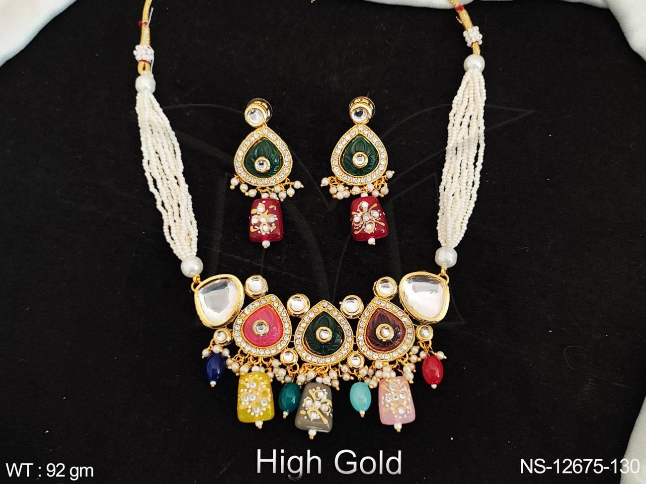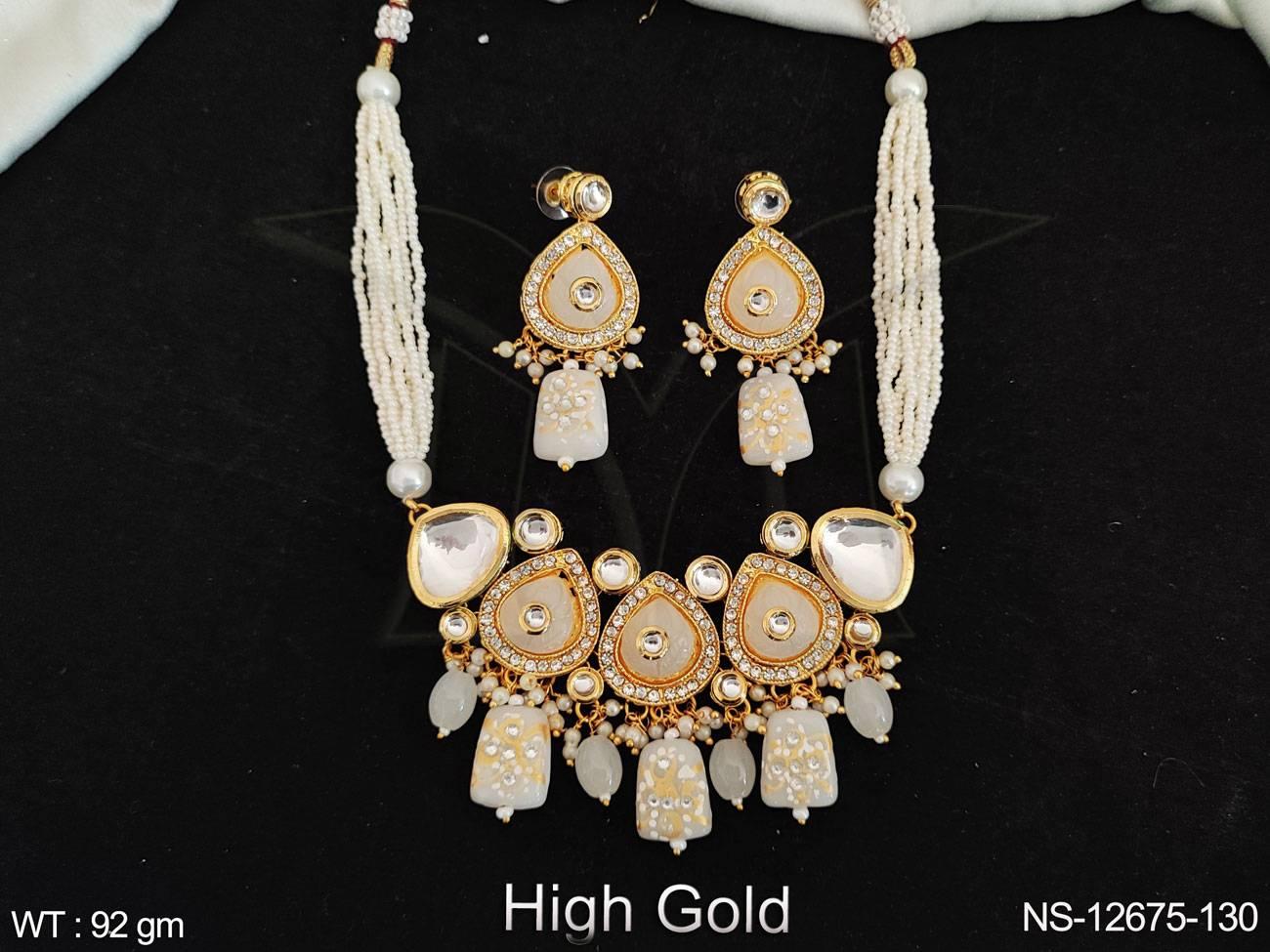 High Gold Polish Fancy Design Party wear Beautiful Kundan Jewellery Beaded Necklace Set