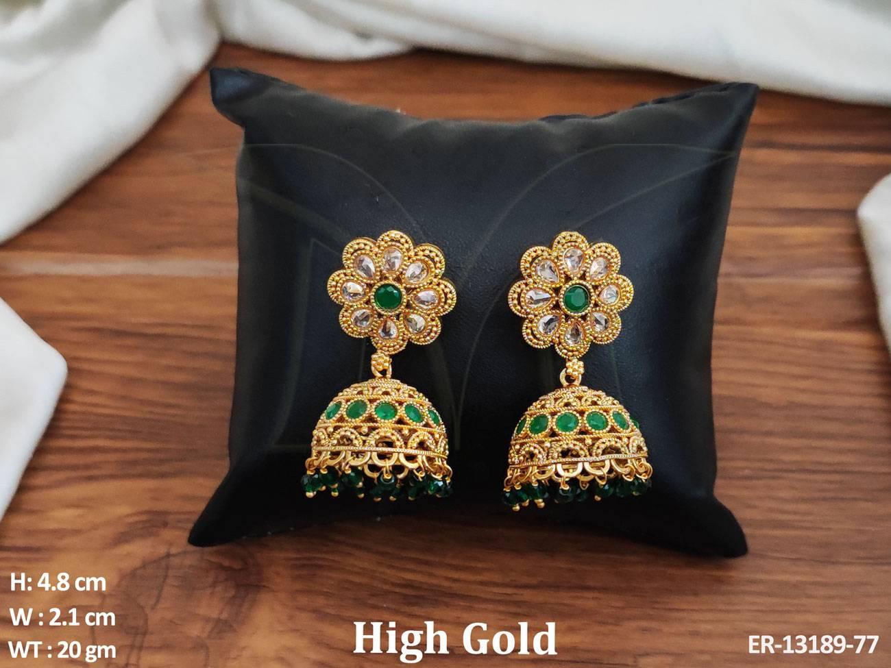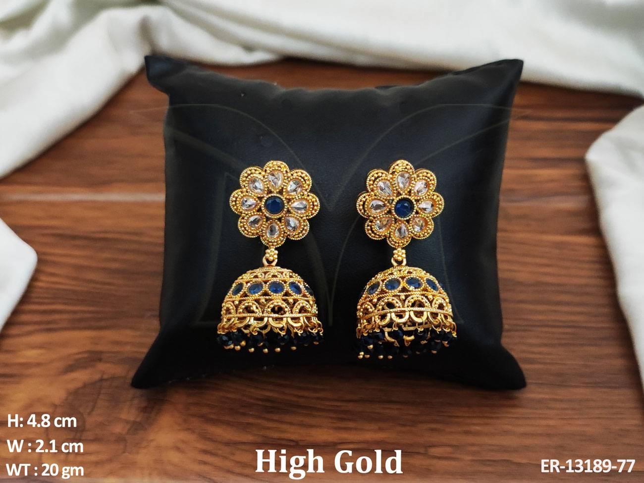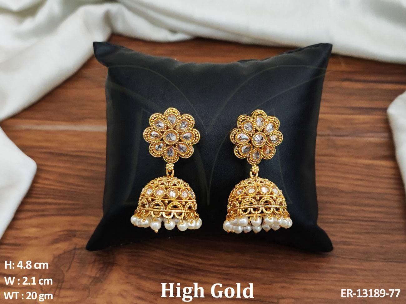 2. High Gold Polish Fancy Style Party wear Antique Jhumka Beautiful Earring