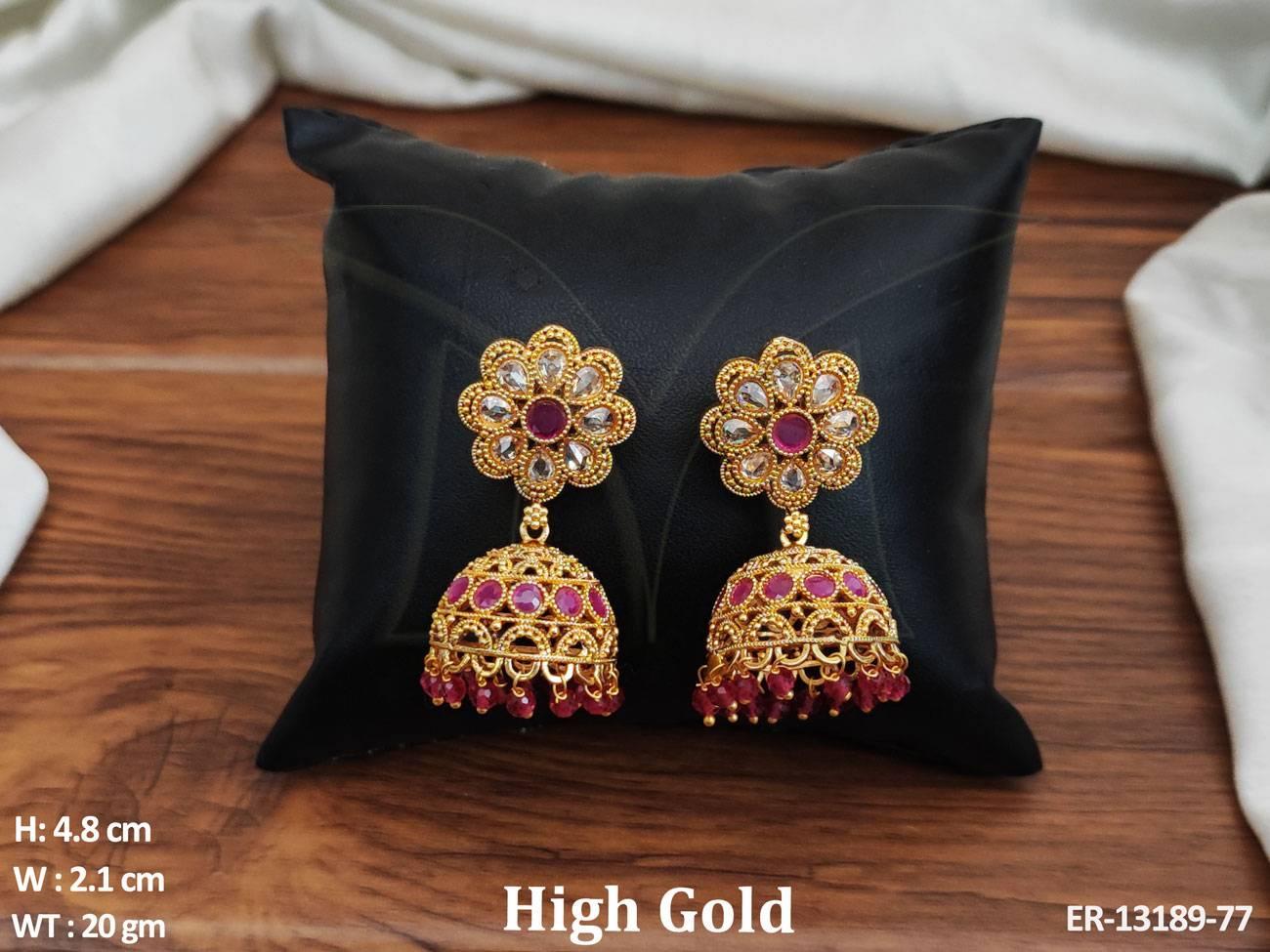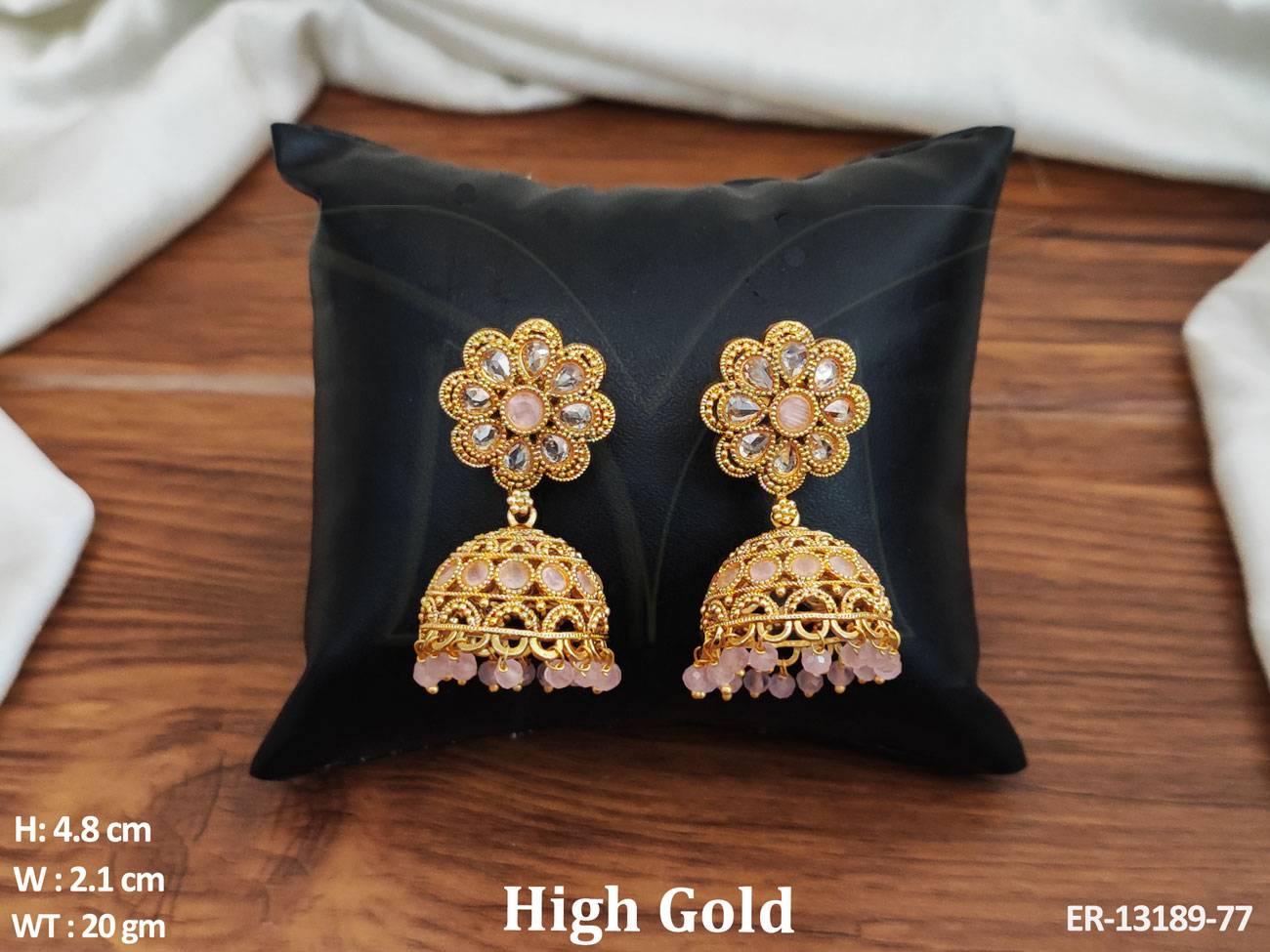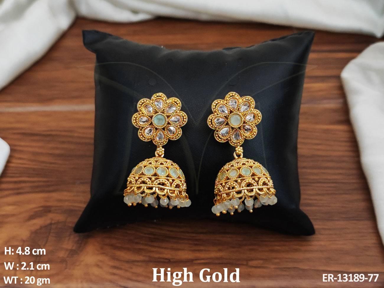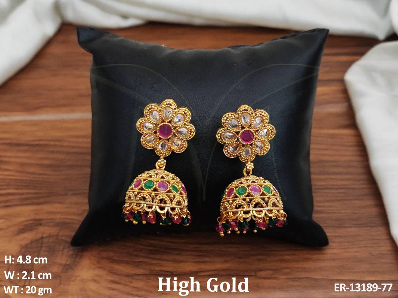 2. High Gold Polish Fancy Style Party wear Antique Jhumka Beautiful Earring