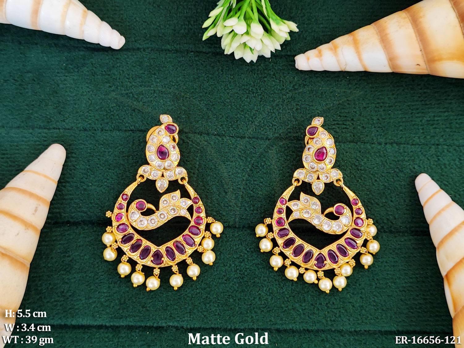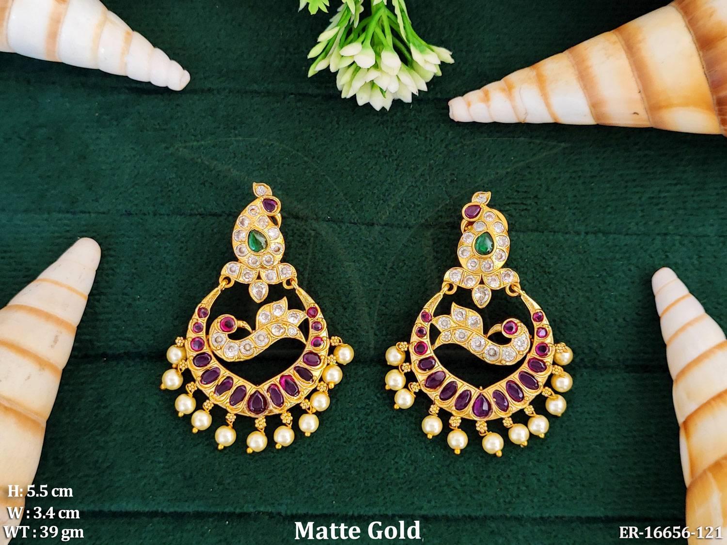 - Kemp Designer Matte Gold Polish Full Stone Peacock Desigen Earring