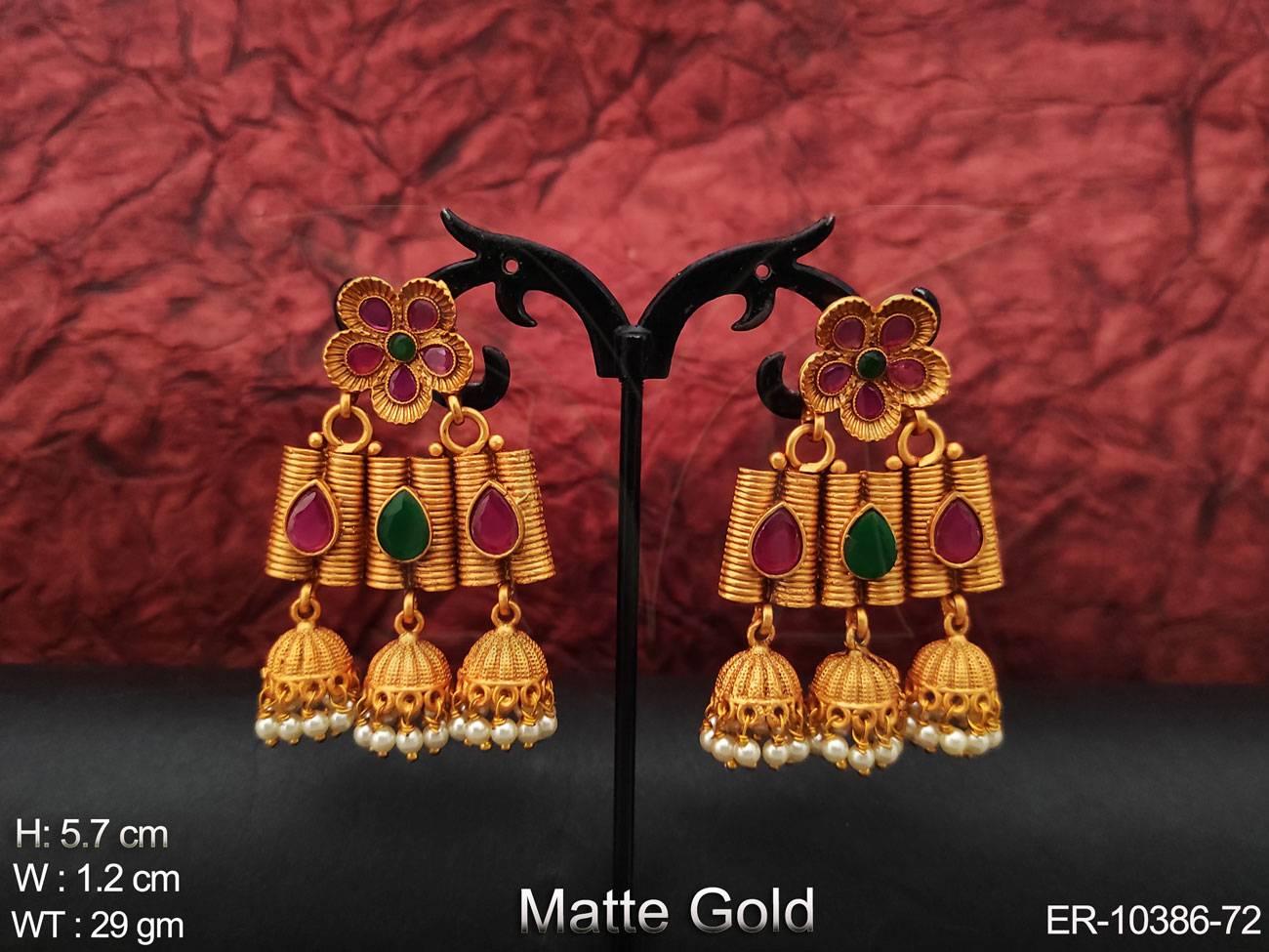 Kemp Jewellery Fancy Design Matte Gold Polish Party wear Jhumka Earring