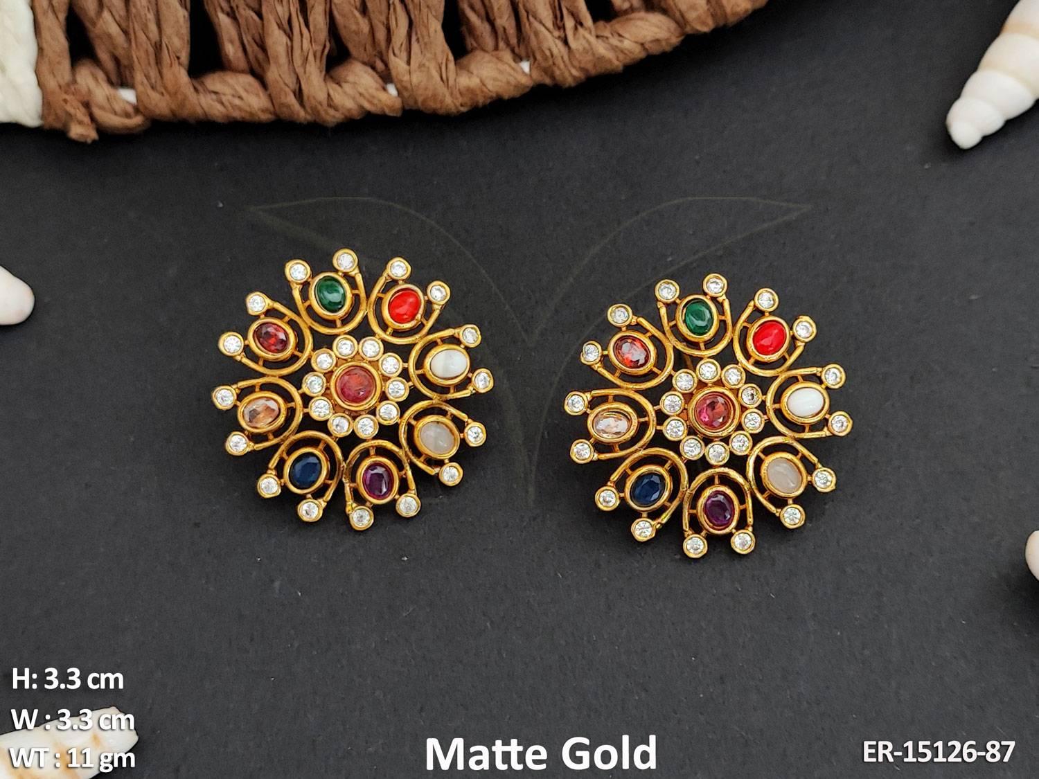 - Kemp Jewellery Matte Gold Polish Full Stone Tops Earrings