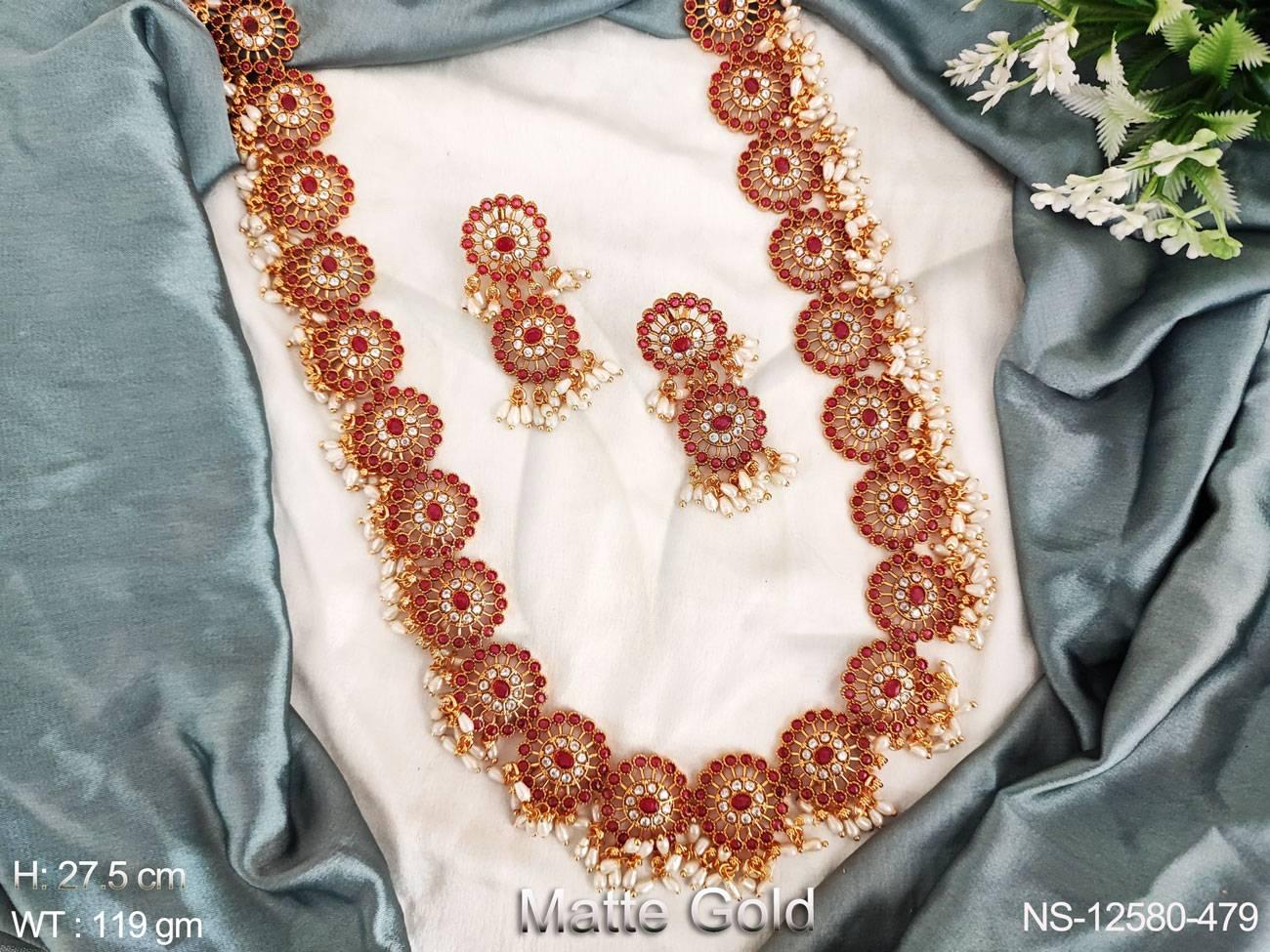 - Kemp Jewelry Matte Gold Polish Designer Wedding Wear Beautiful Kemp Long Necklace Set