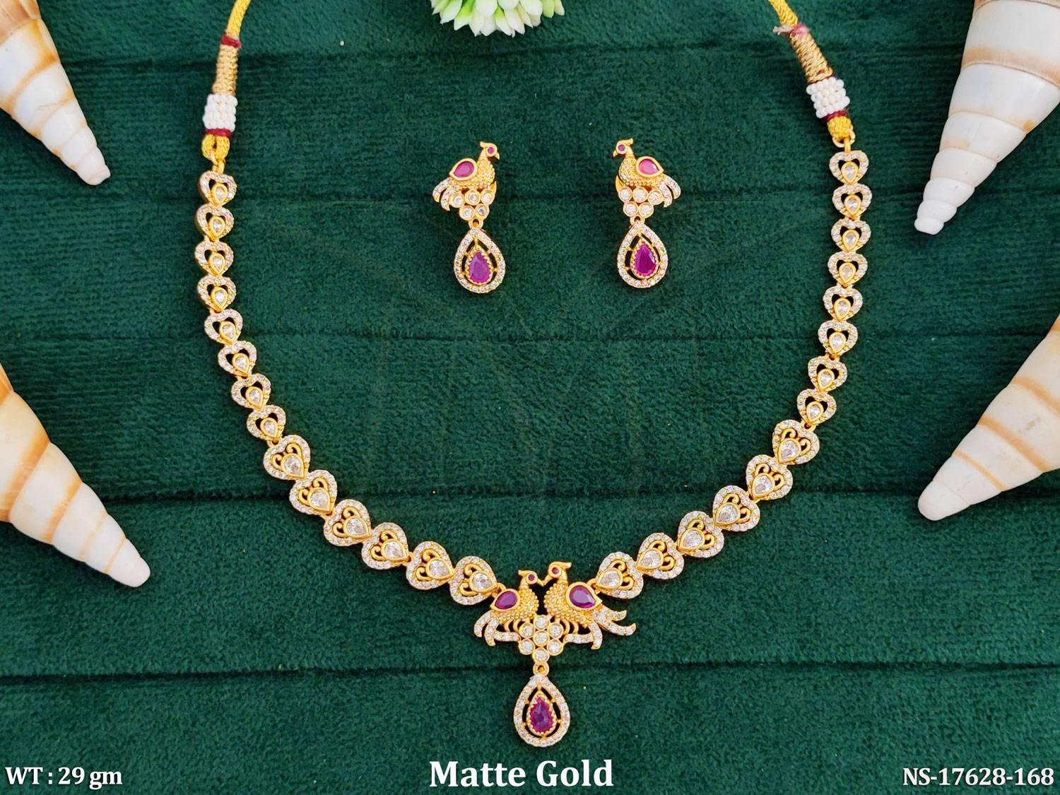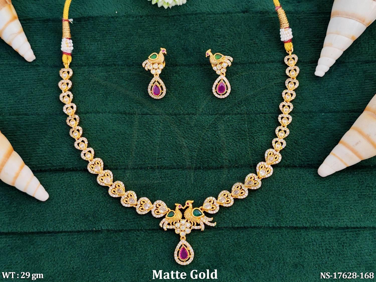 2. Kemp Necklace Set with Peacock Design in Matte Gold Finish