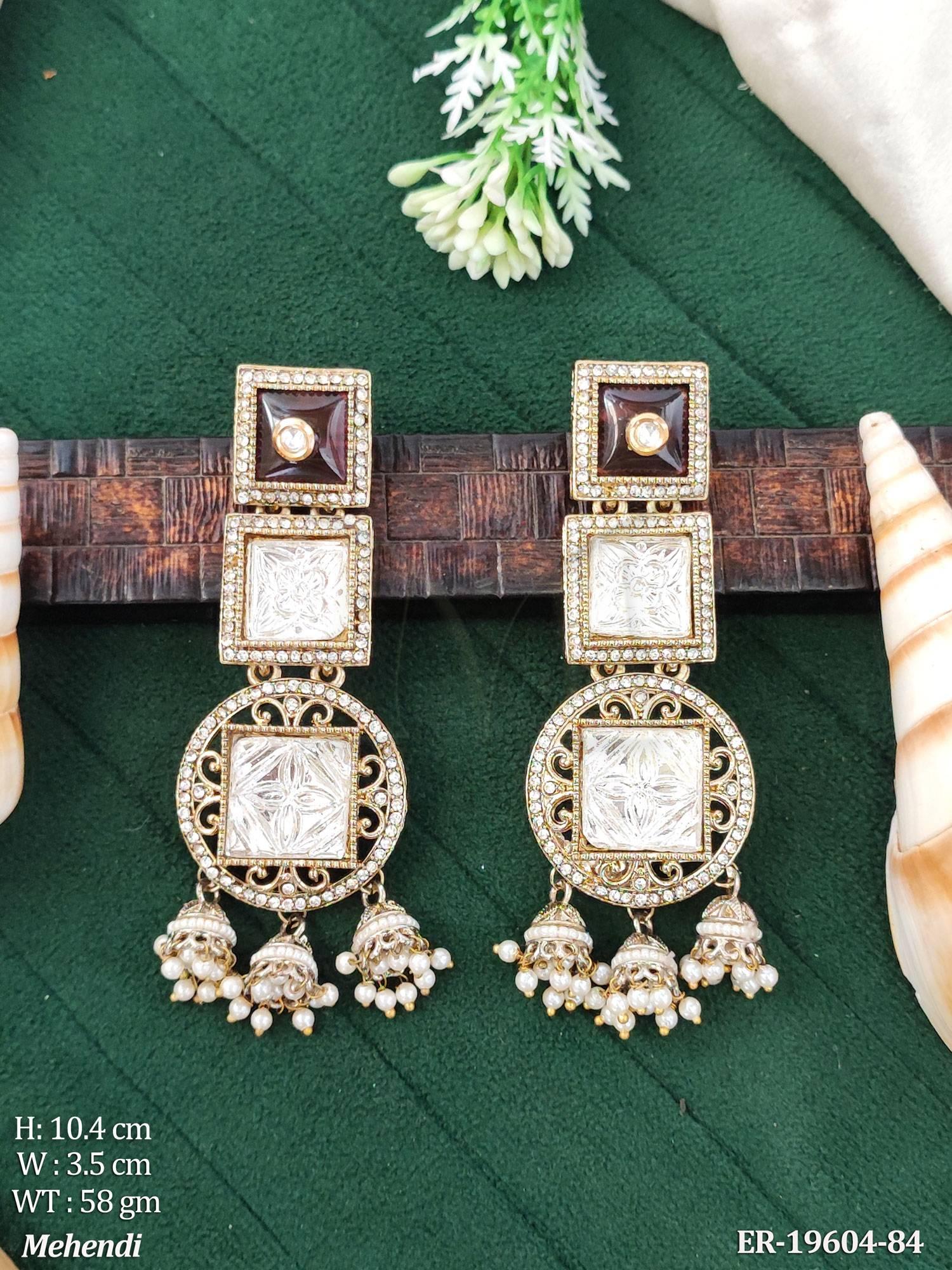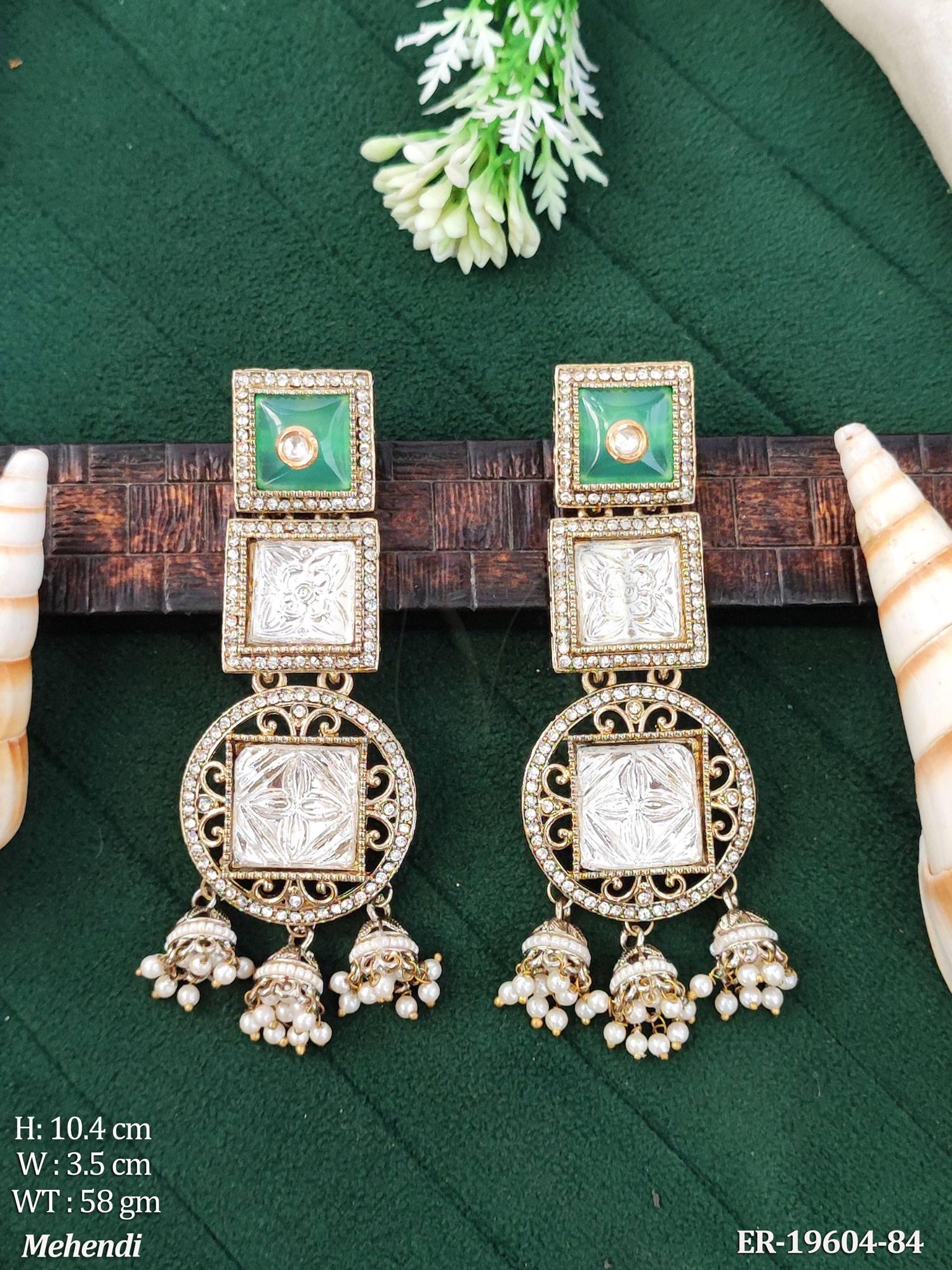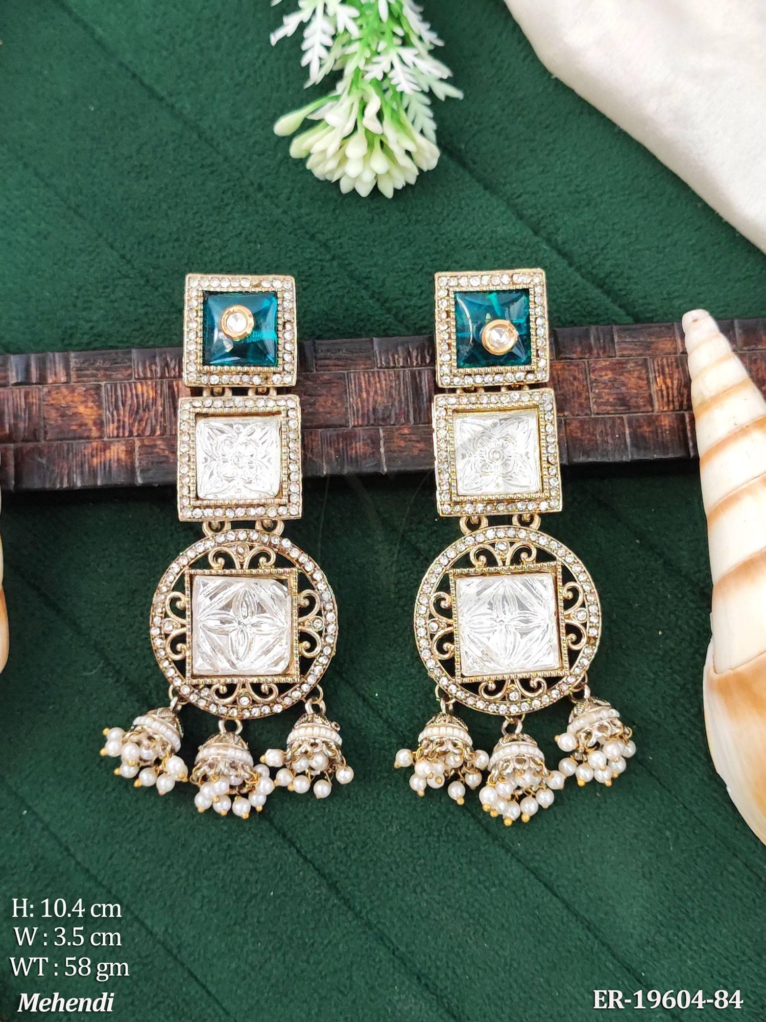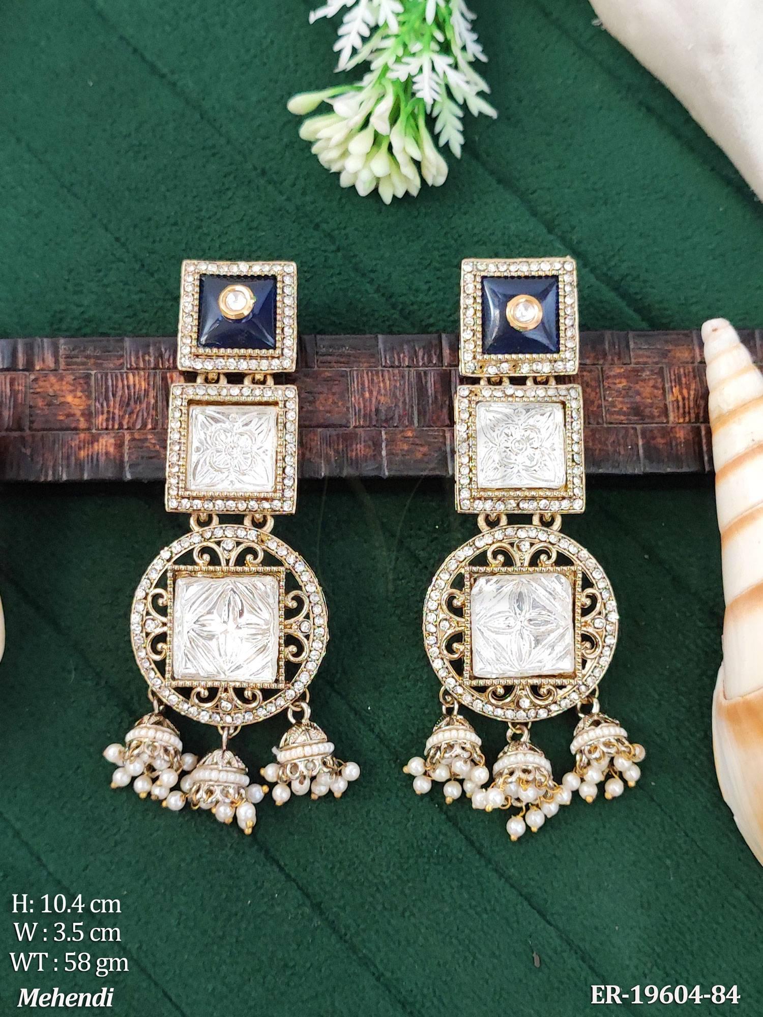 - Kundan Designer Long Earrings Traditional Jhumka Style Jewellery