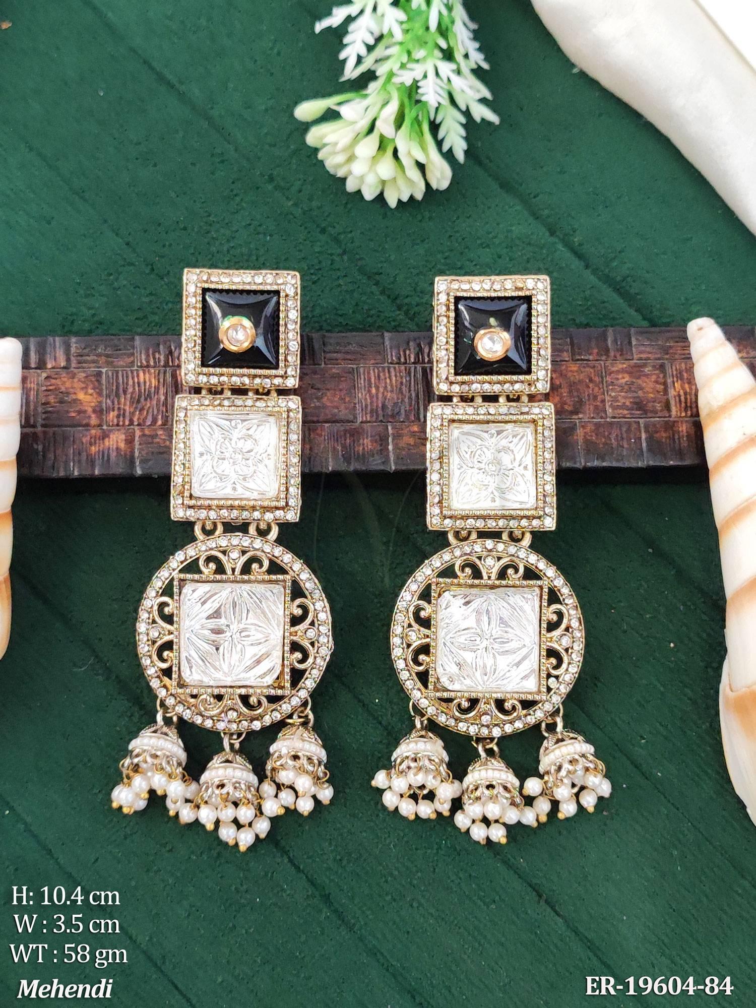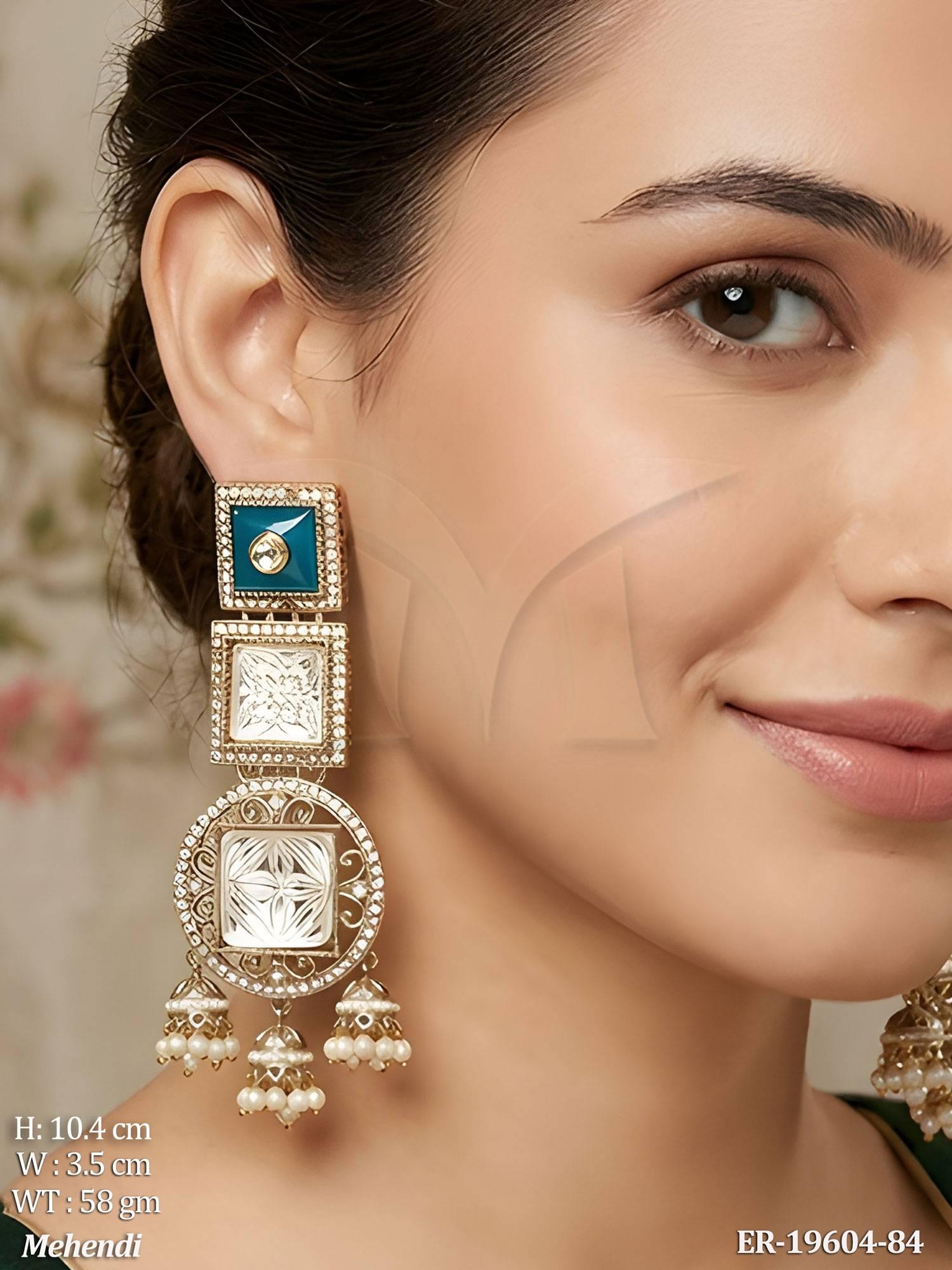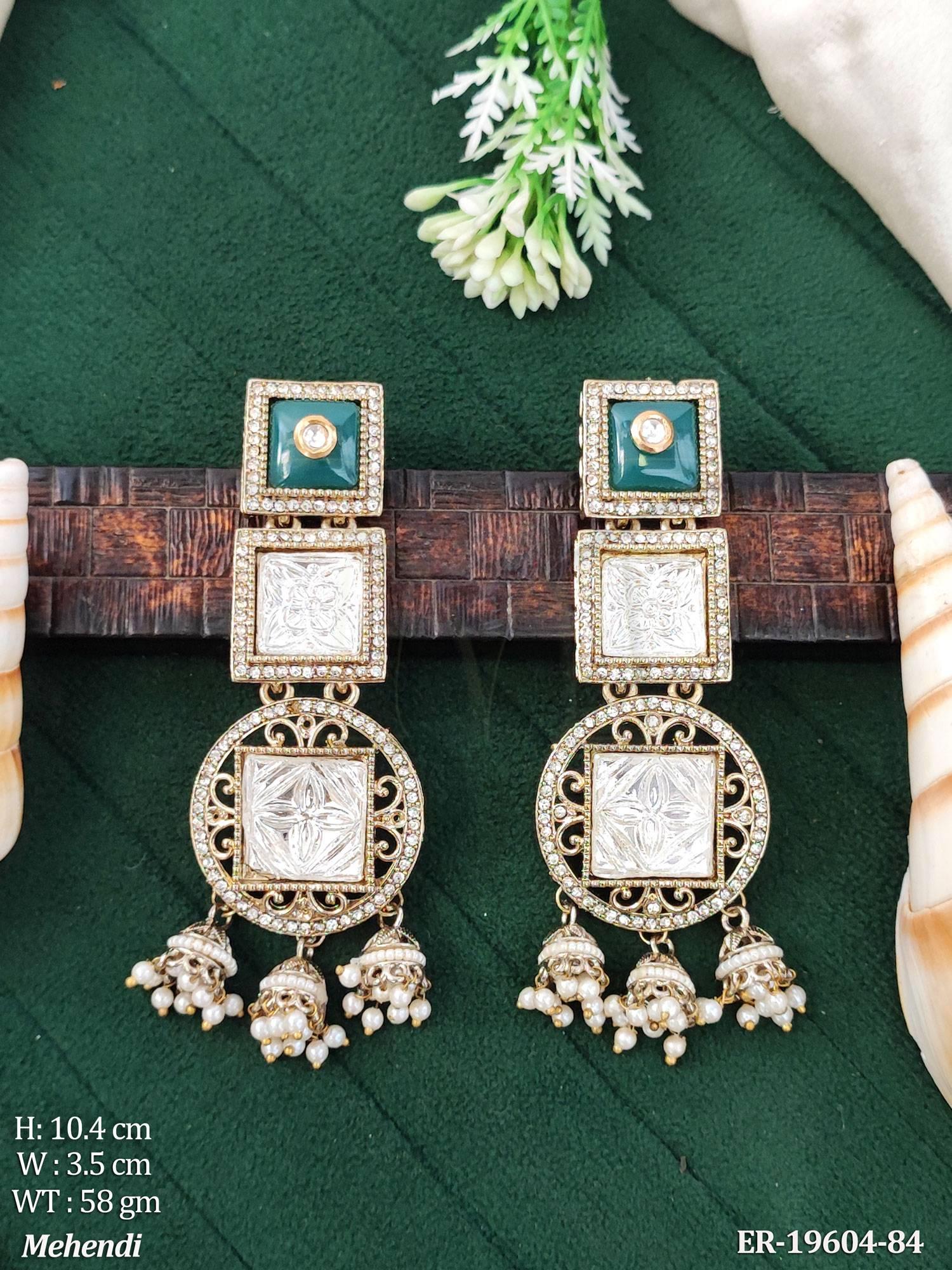 - Kundan Designer Long Earrings Traditional Jhumka Style Jewellery