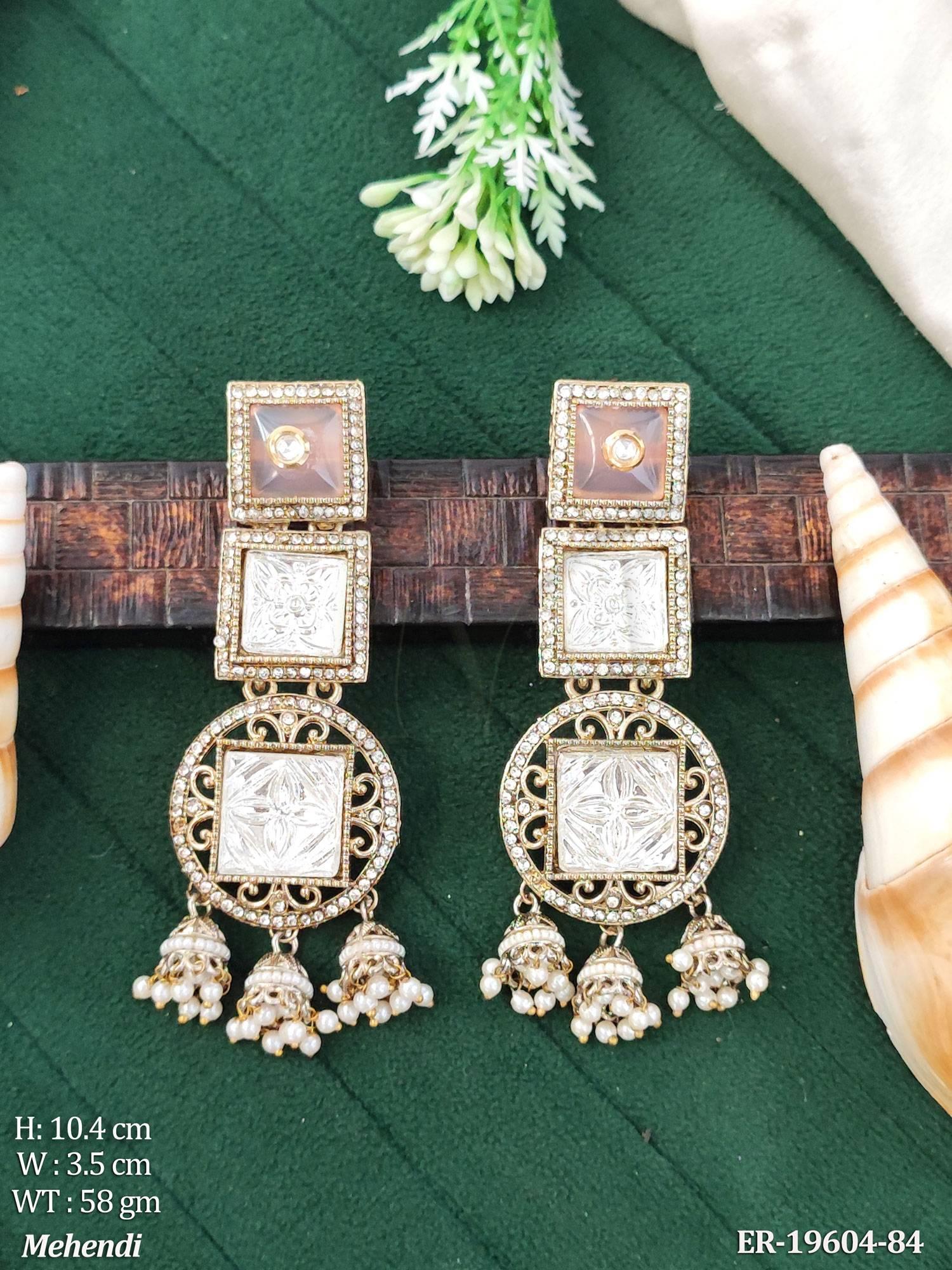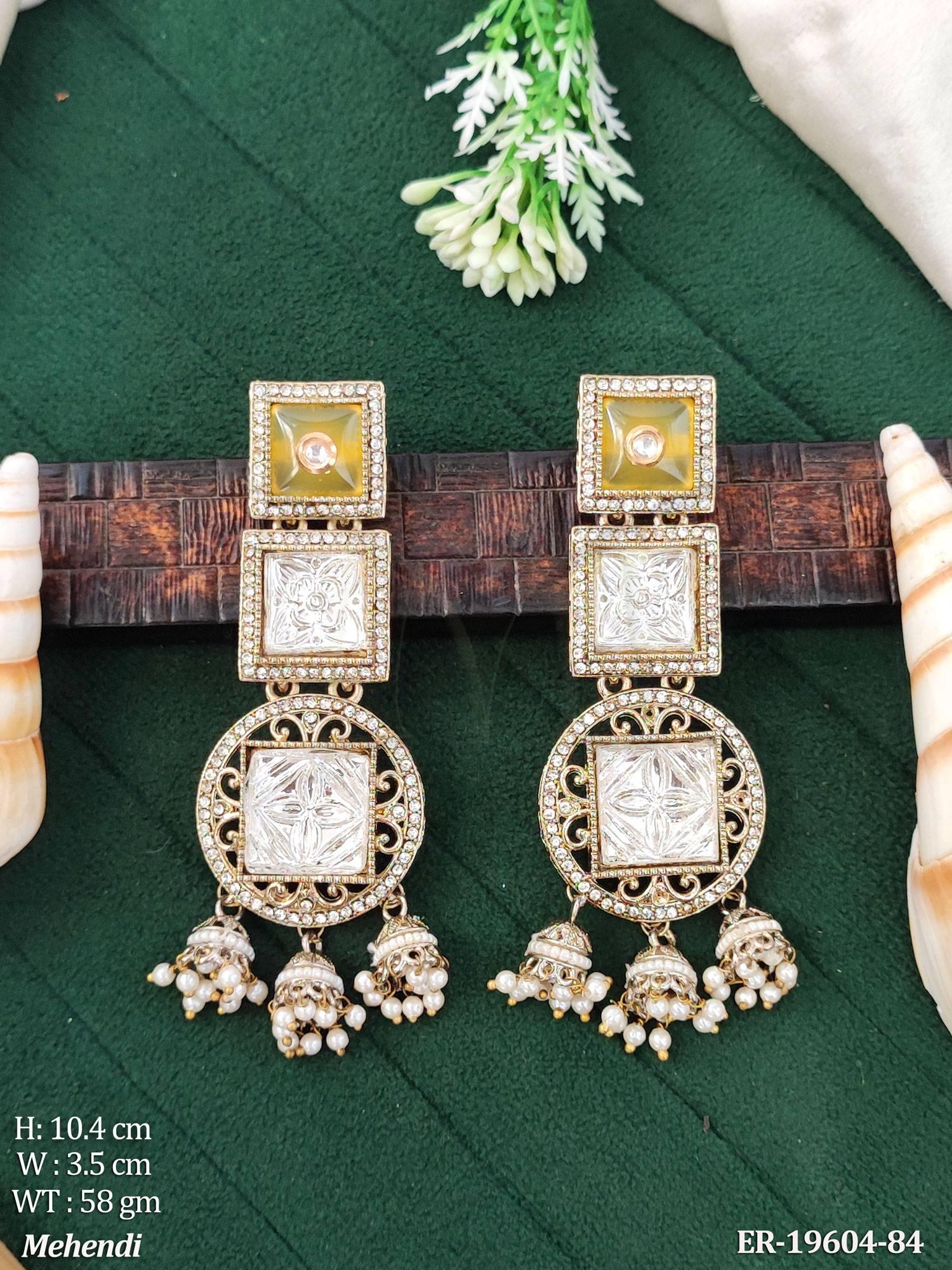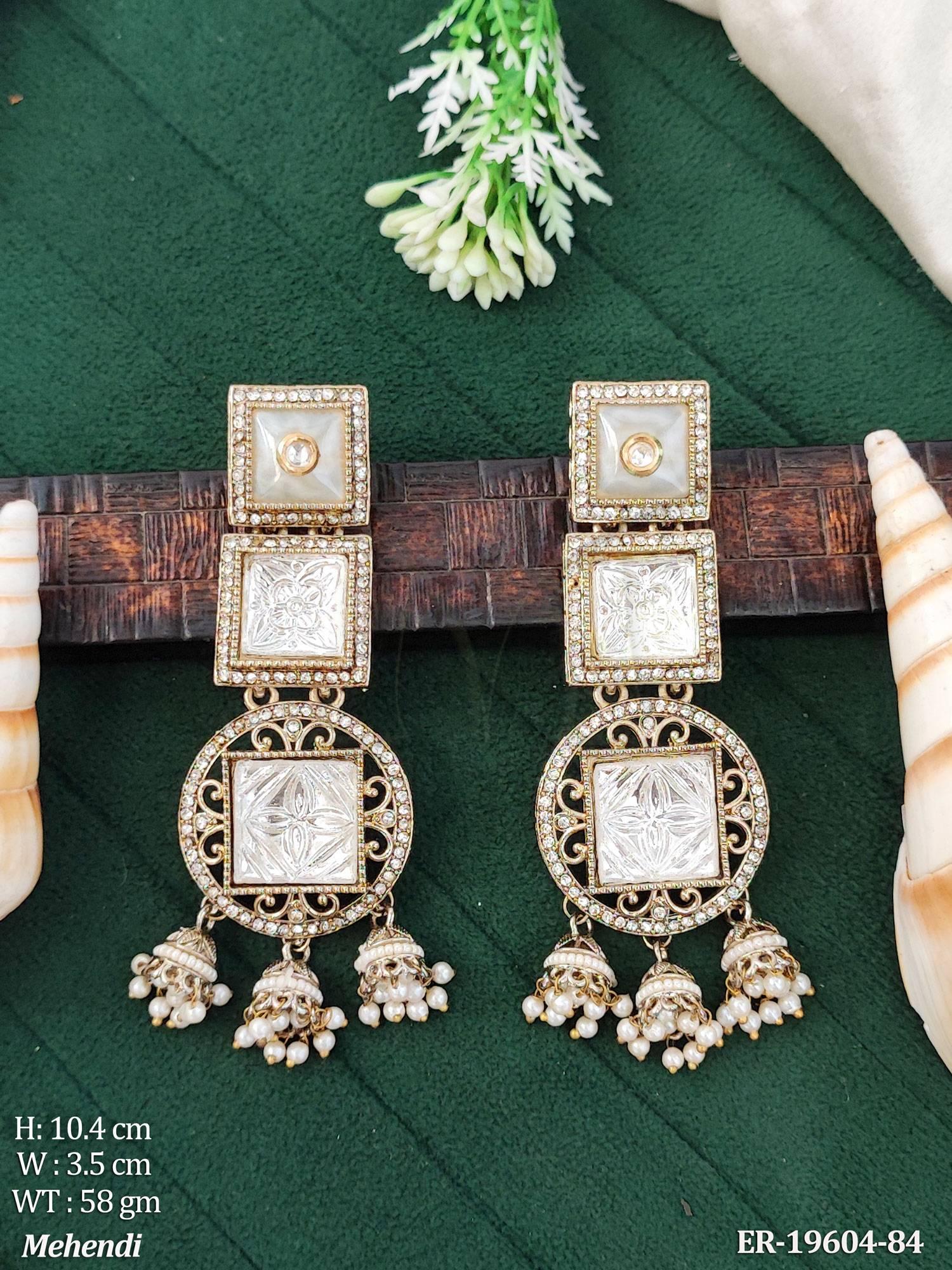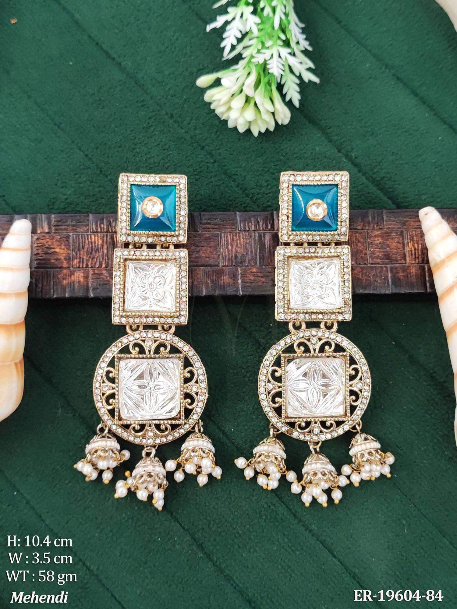 - Kundan Designer Long Earrings Traditional Jhumka Style Jewellery
