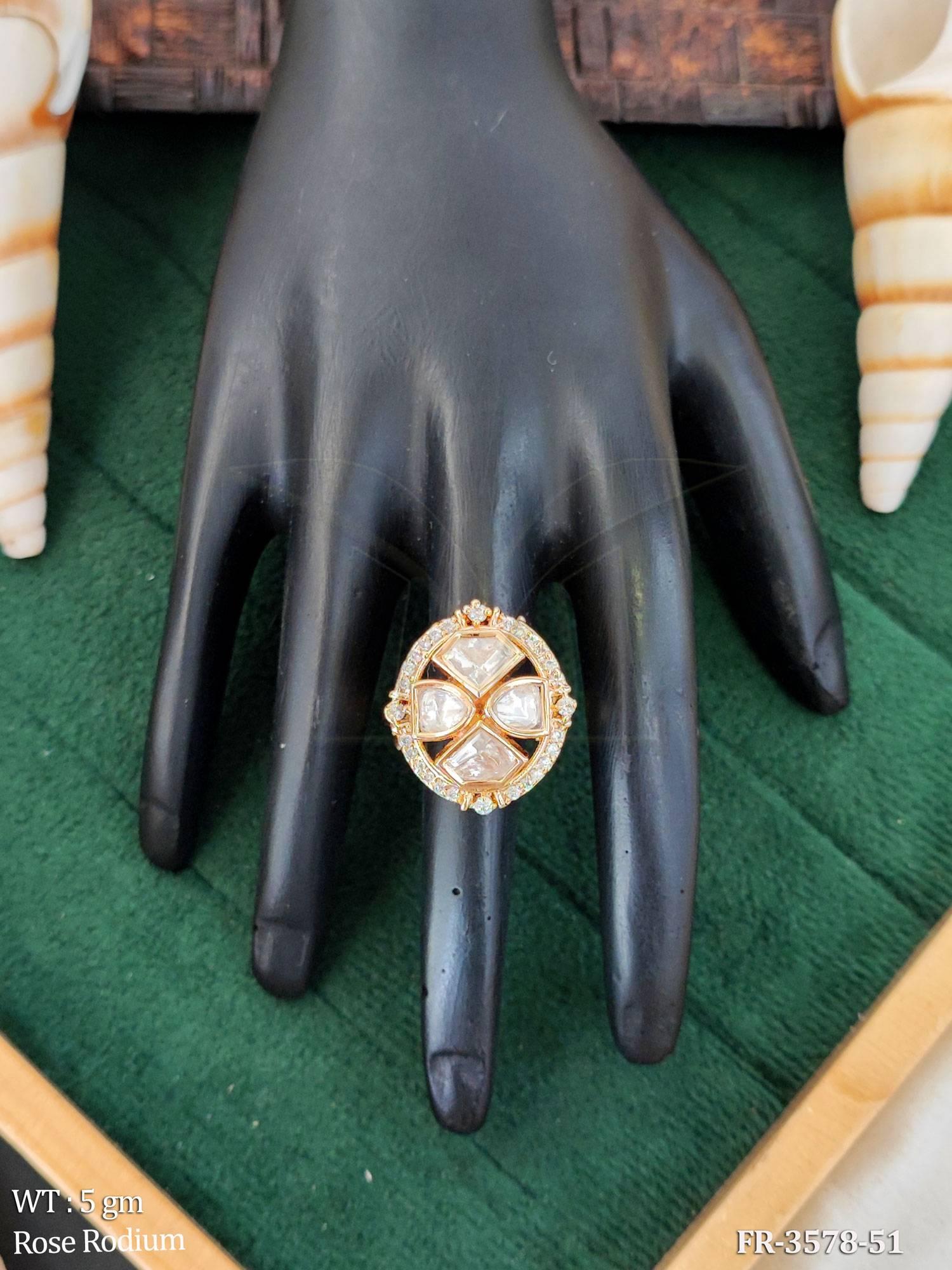 Kundan Designer Rose Rodium Polish Finger Rings