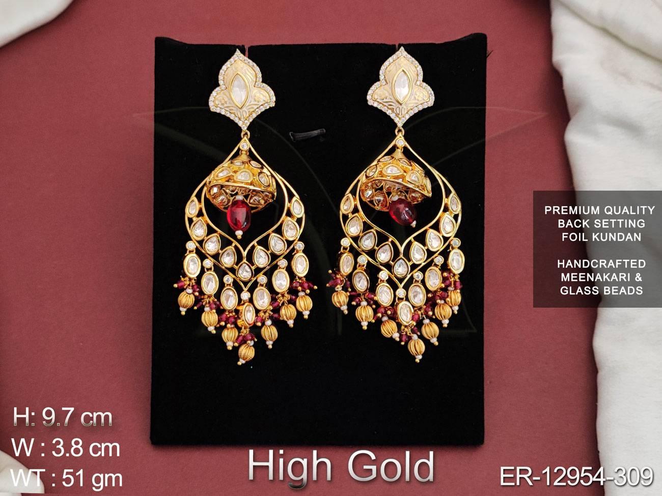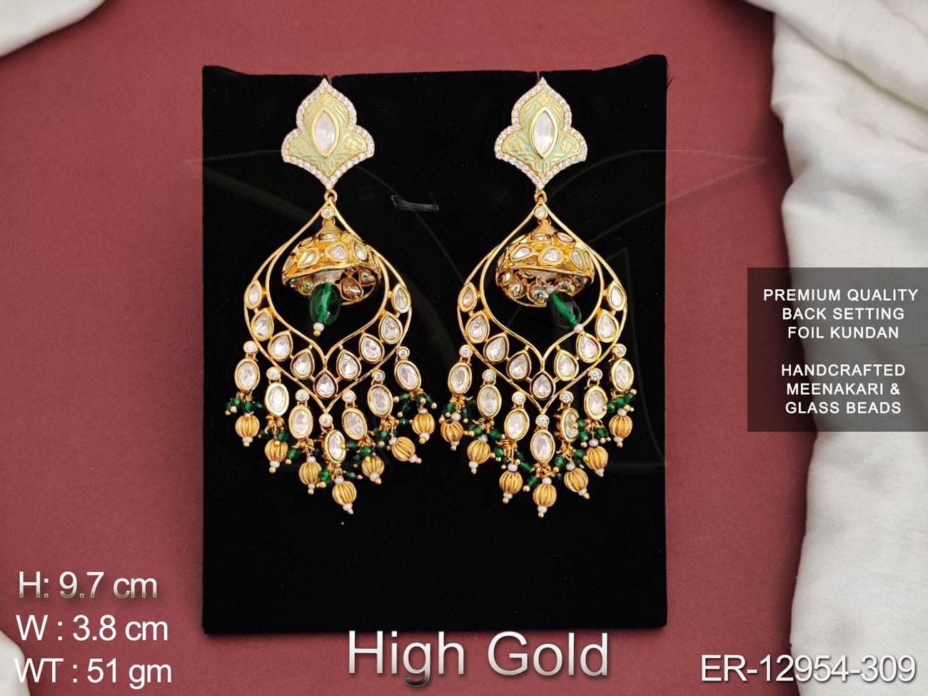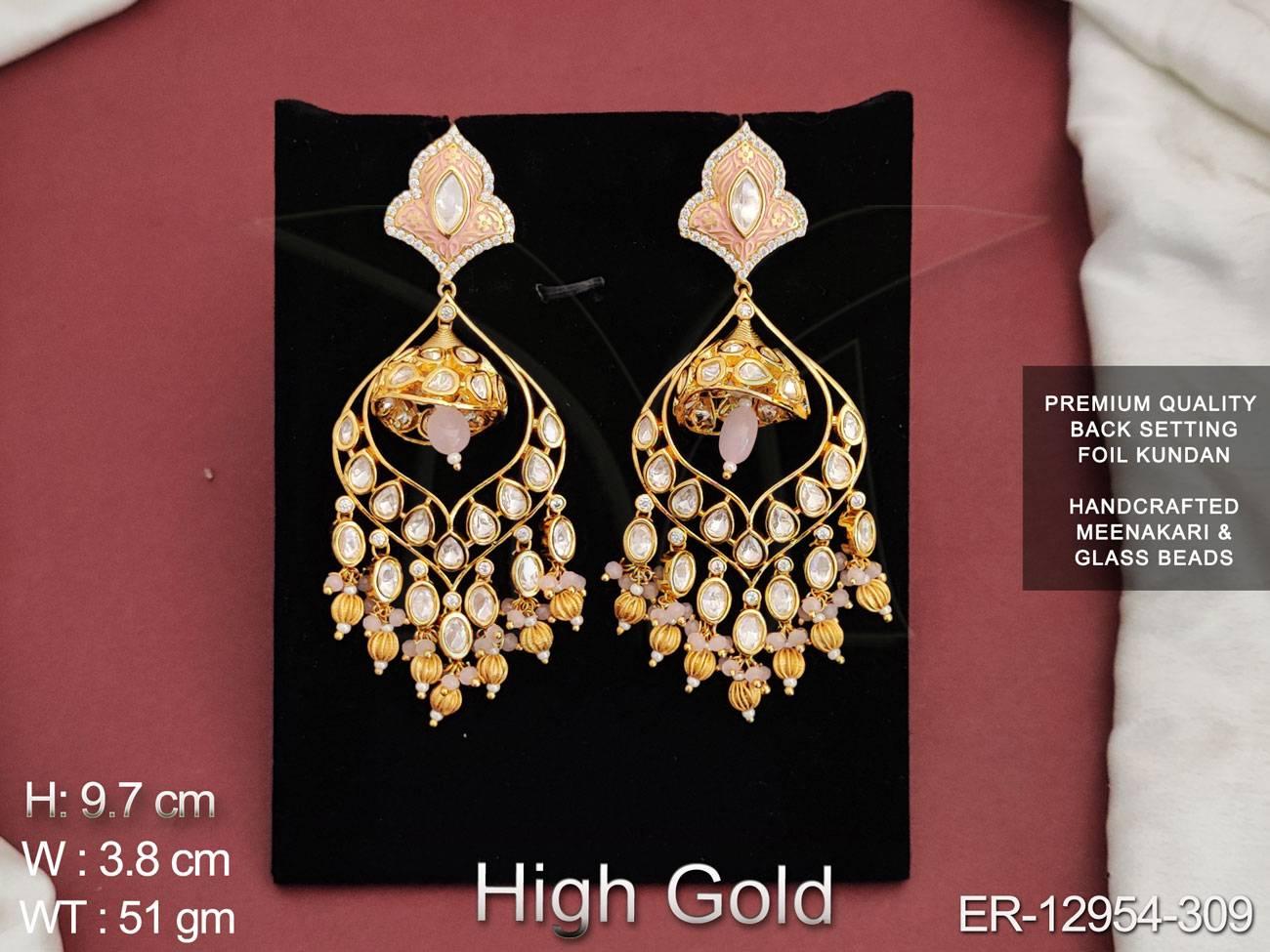 2. Kundan Jewellery Full Stones High Gold Polish Fancy Design Kundan Earrings