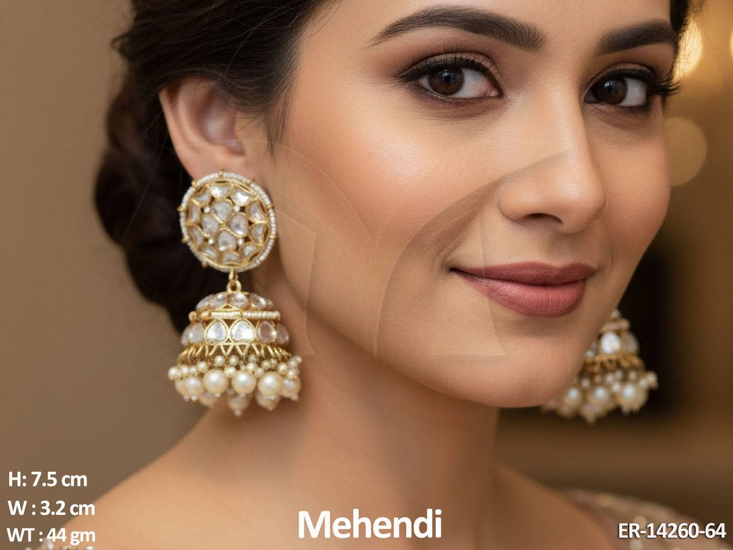 - Kundan Jewellery Mehendi Polish Fancy Style Kundan Jhumka Earrings