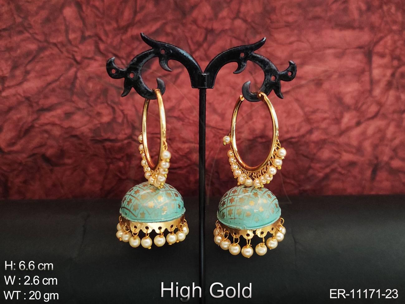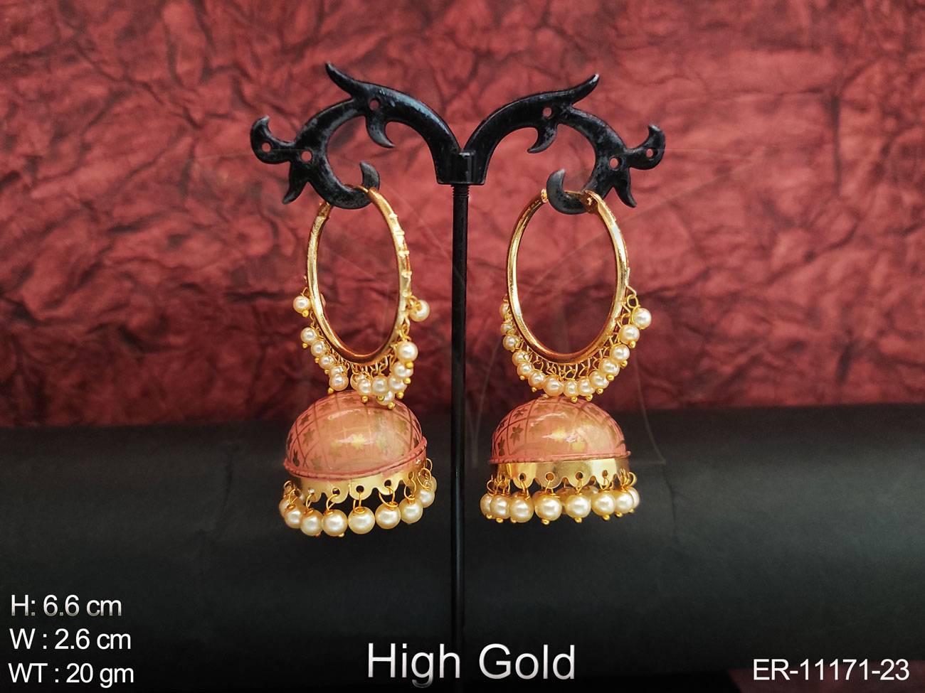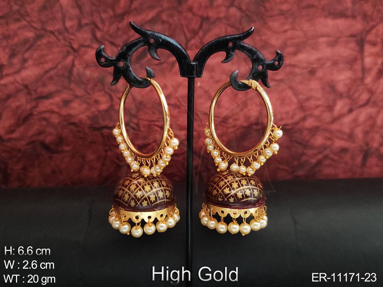 2. Meenakari Design Clustered Pearl High Gold Polish Party wear Designer Jhumka Earring