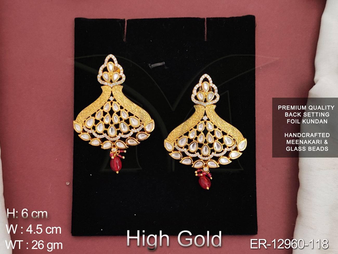 2. Meenakari Handcrafted Design High Gold Polish Fancy Party wear Kundan Earring