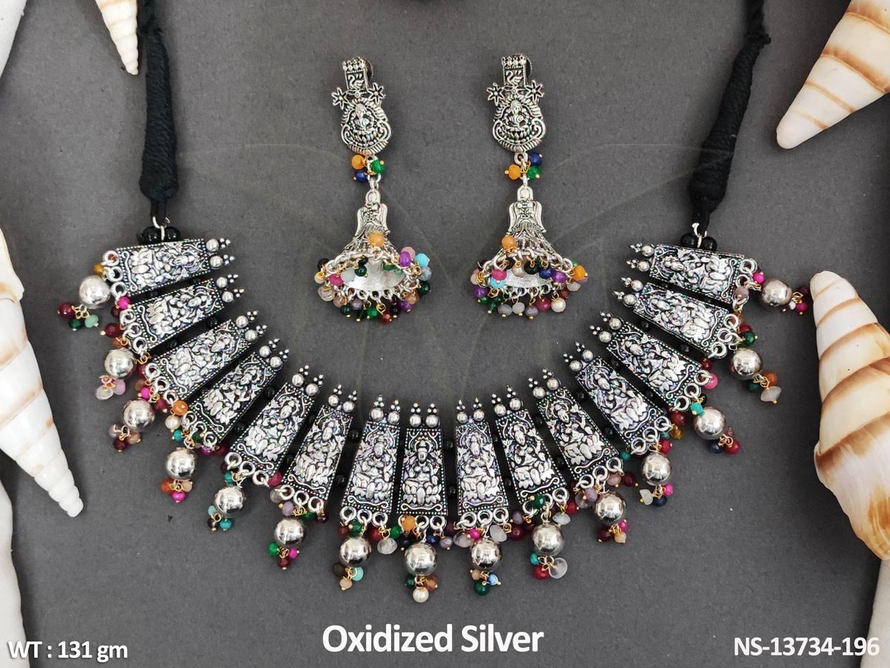 - Oxidised Silver Polish Antique Style Party wear Beautiful Designer Oxidised Jewellery Oxidised Short Necklace Set