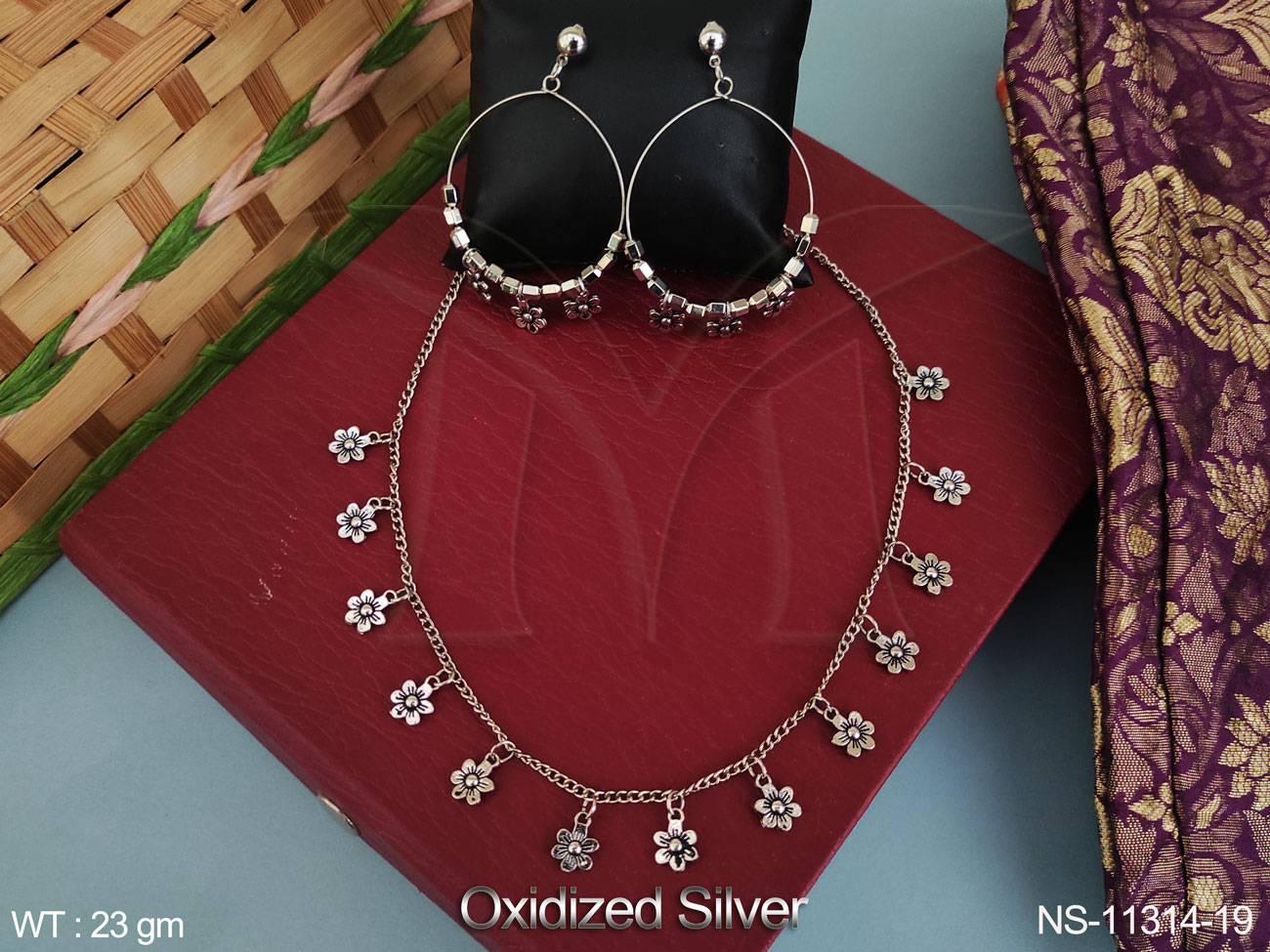 - Oxidised Silver Polish Designer Fancy Style Party wear Oxidised Jewellery Pendant Set