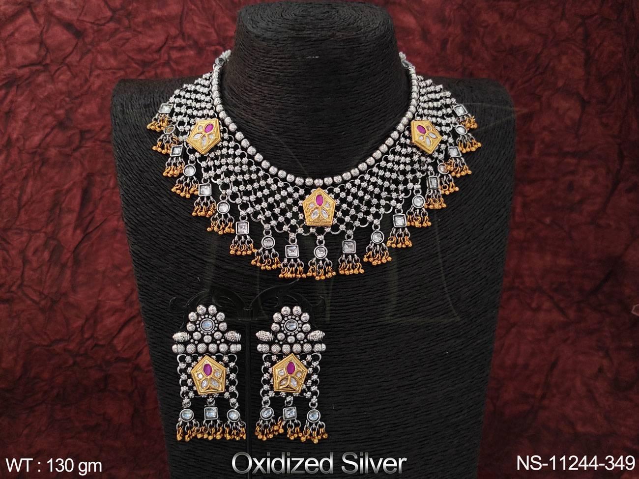 2. Oxidised Silver Polish Fancy Style Party wear Heavy Oxidised Jewellery Choker Necklace Set