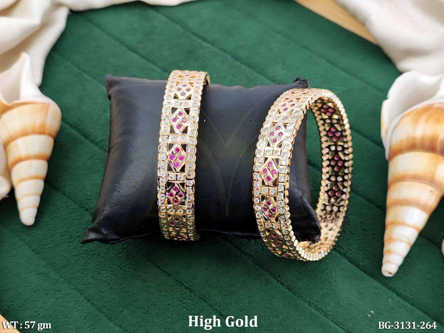 2. Premium Gold Finish American Diamond Bangles Pair