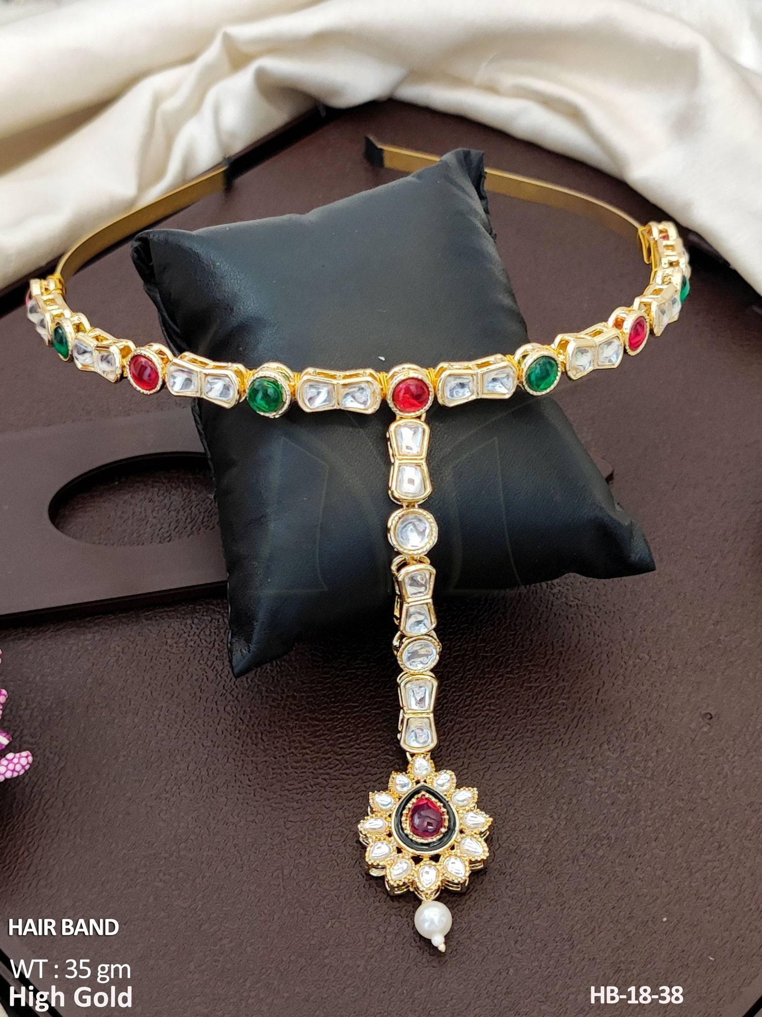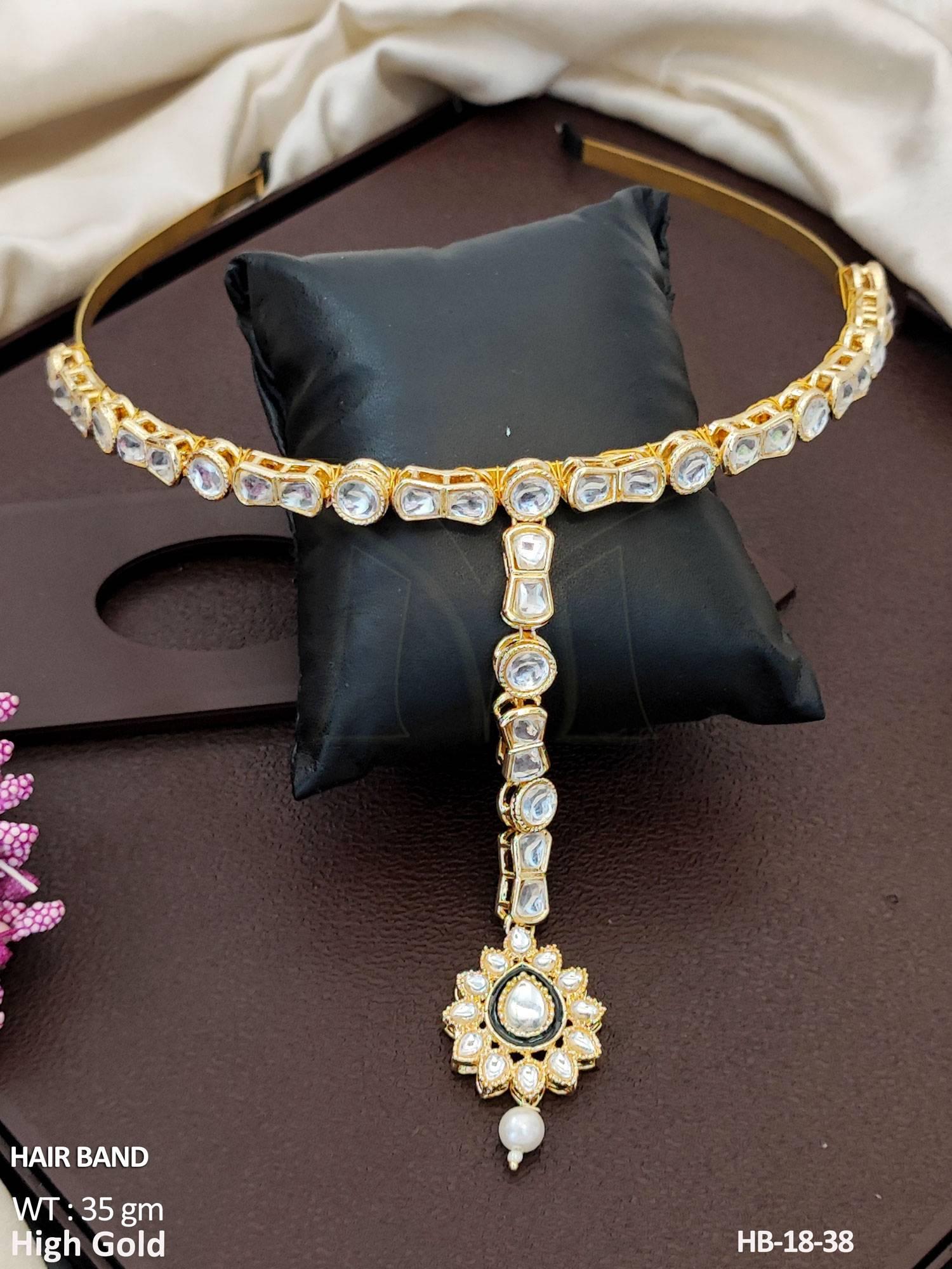 2. Premium High Gold Hair Band with Maang Tikka Style Look
