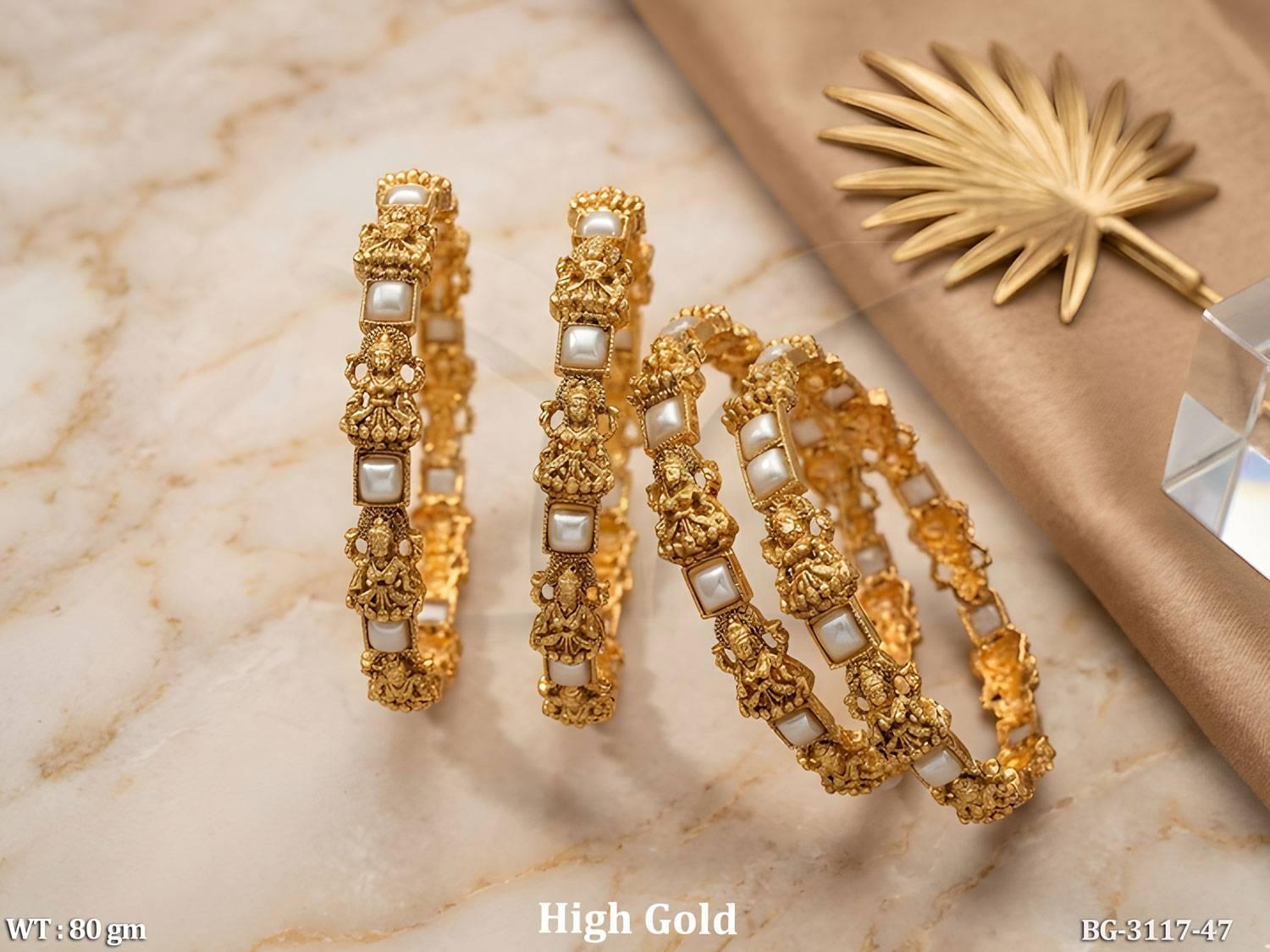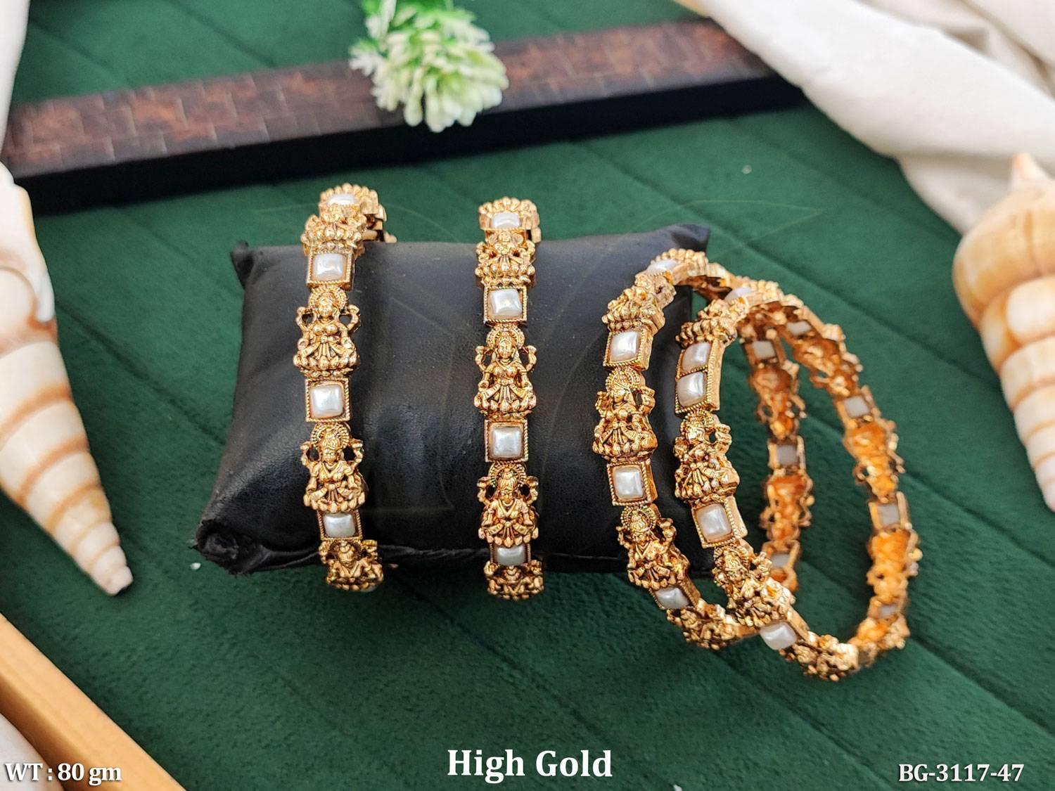 - Premium Temple Style Lakshmi Pearl Bangles Set