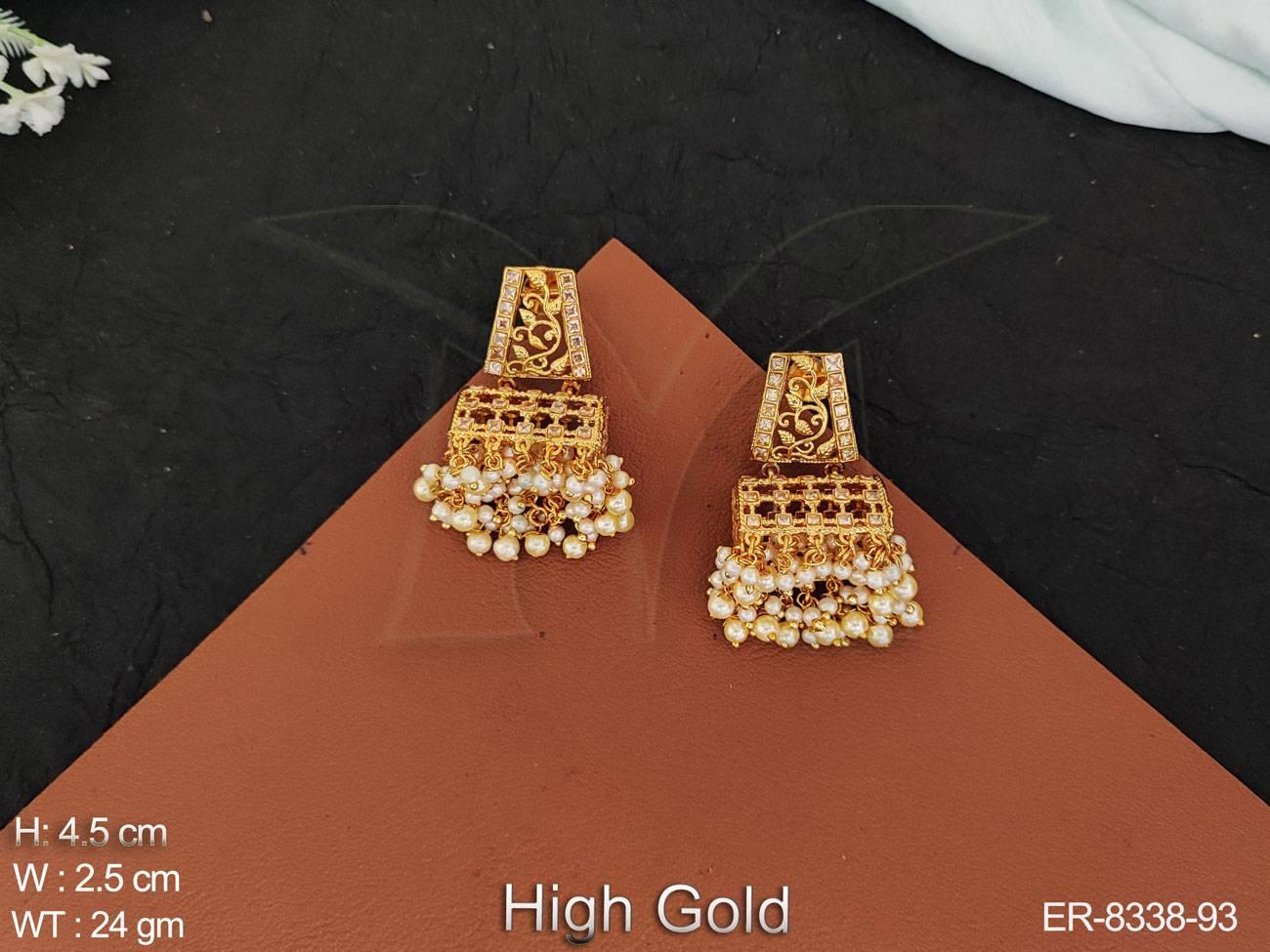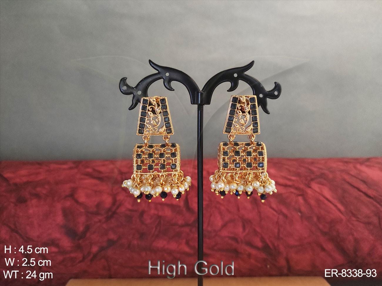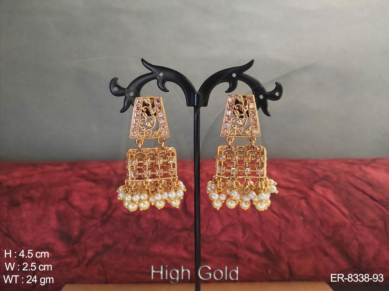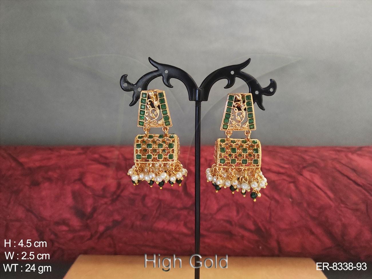 - Square Shape Stone Studded High Gold Polish Antique Earring