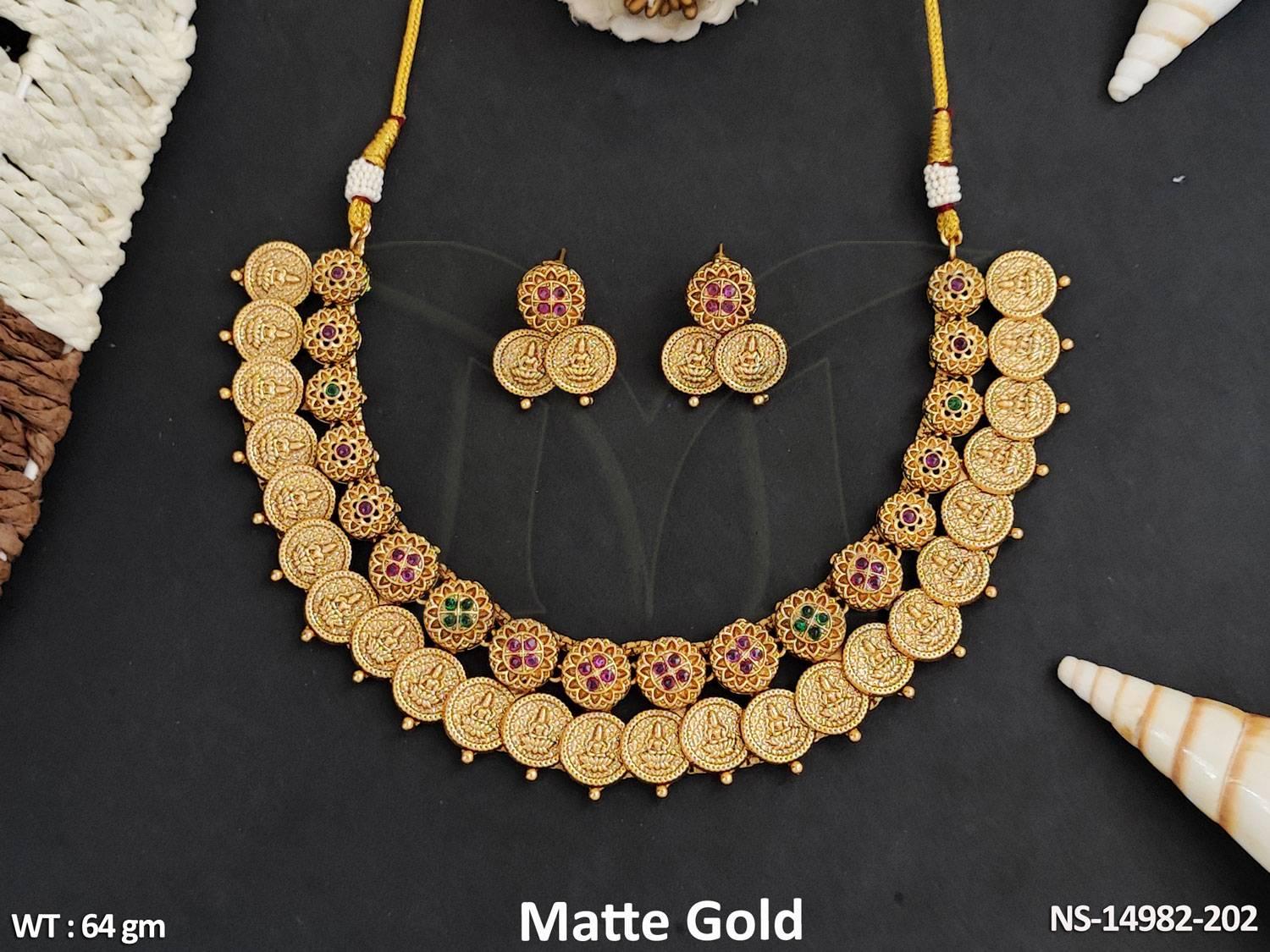 2. Temple Jewellery Attractive Design Matte Gold Polish God Figure Temple Coin Necklace Set