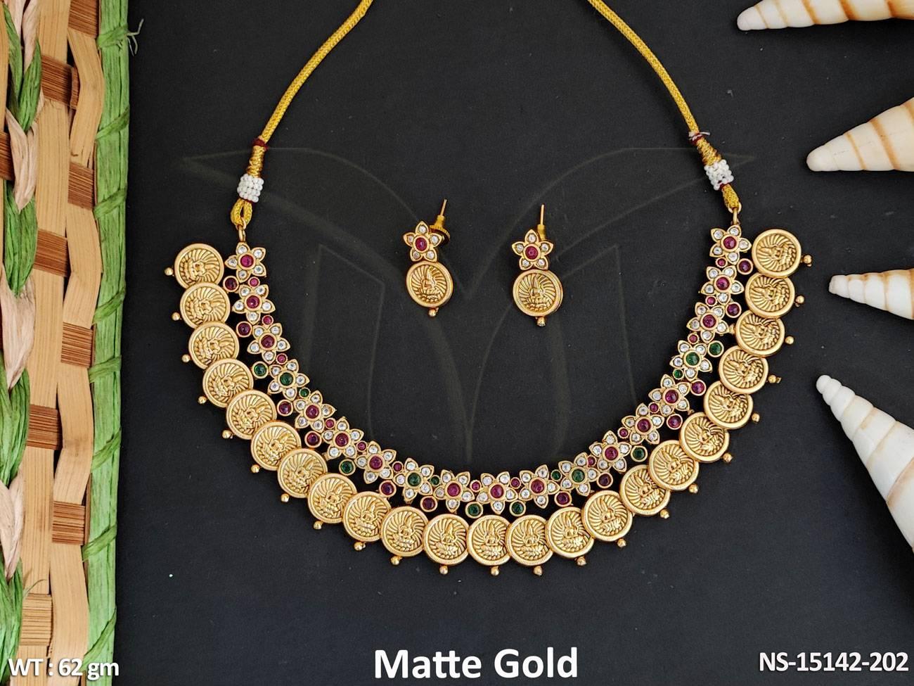 - Temple Jewellery Matte Gold Polish God Face Coin Short Necklace Set