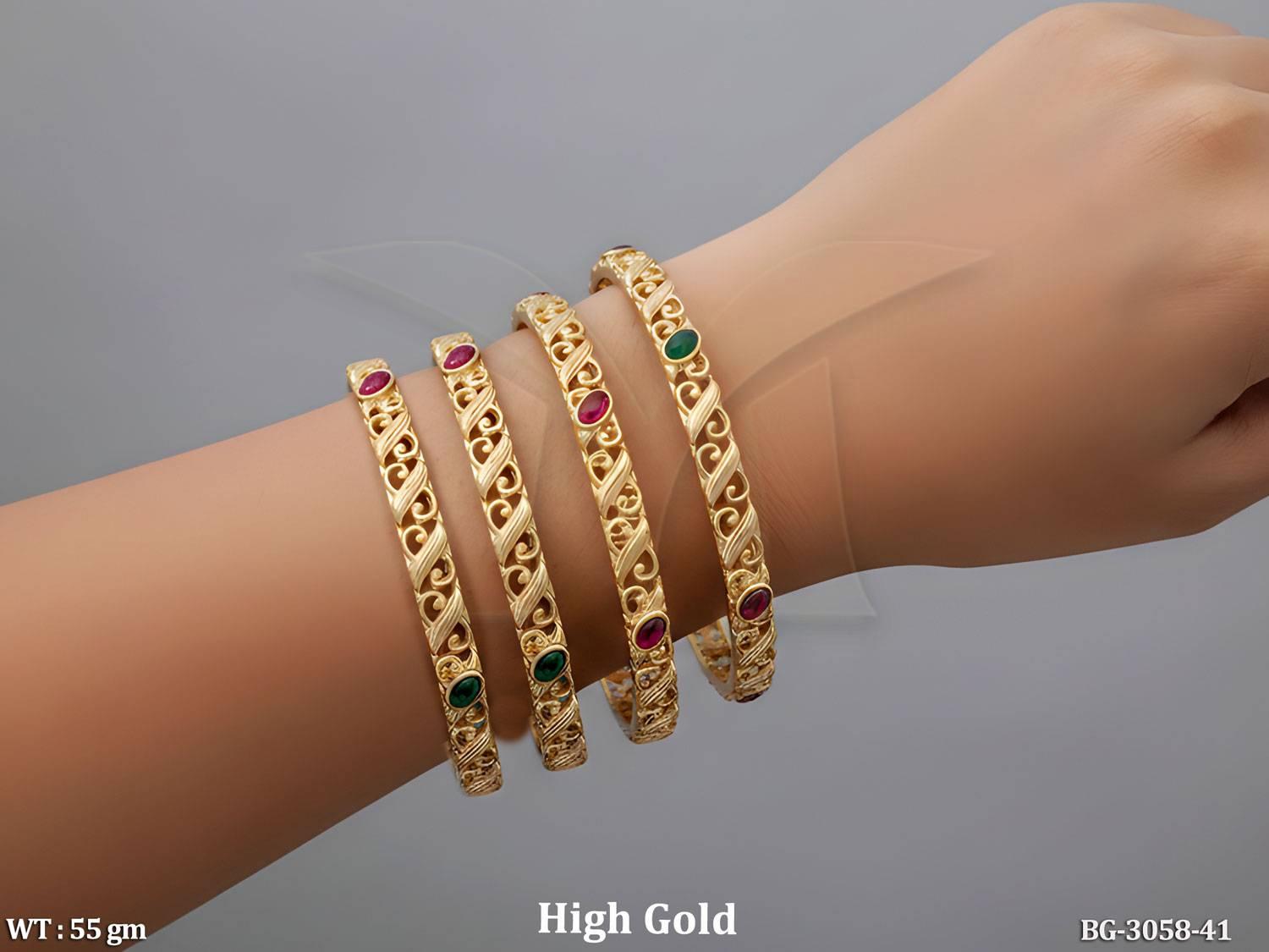 - Traditional Filigree Gold Look Stone Studded Bangles