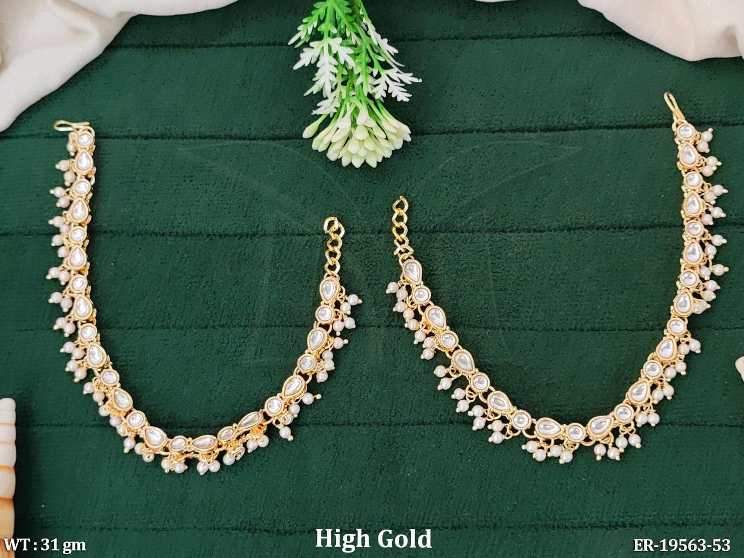 - Traditional Kundan Pearl Drop Kaan Chain Earrings