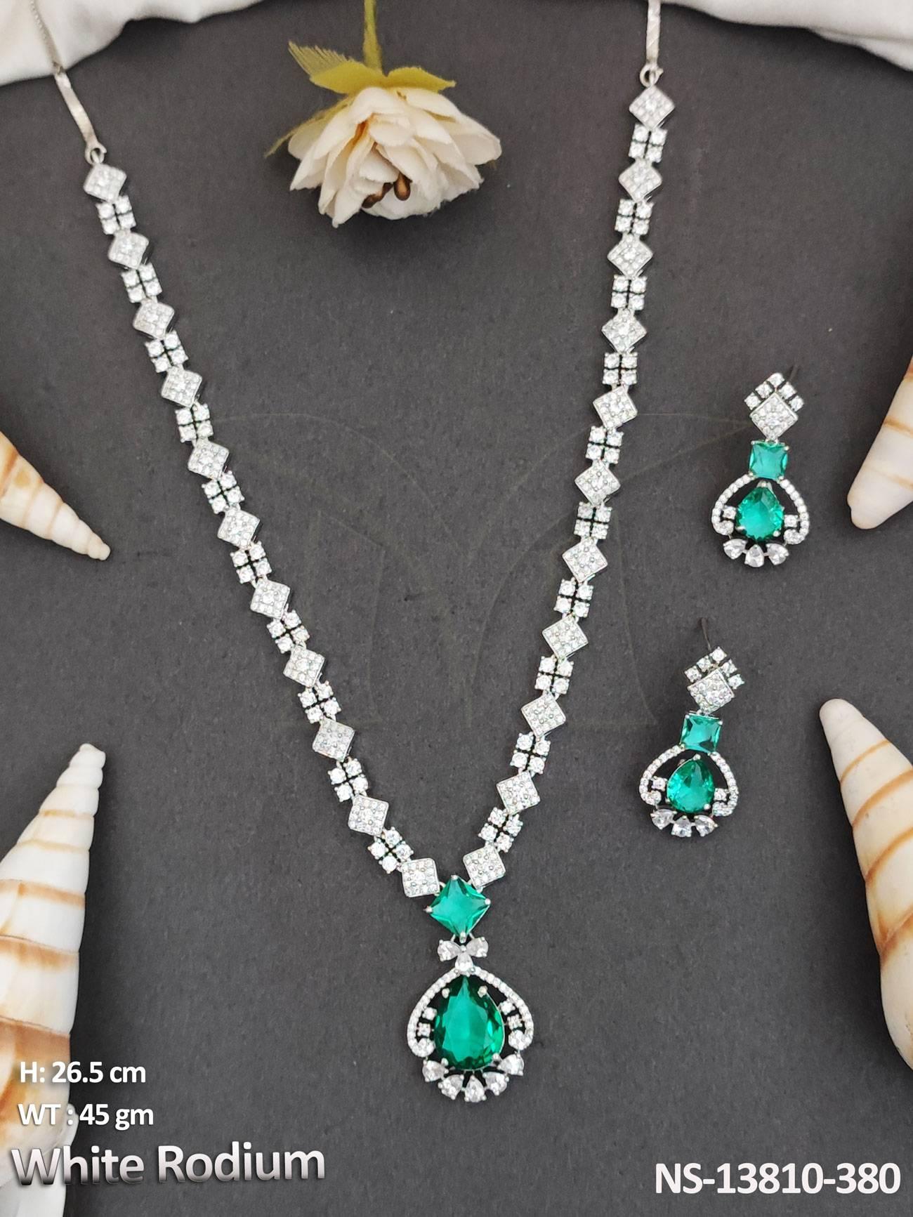 White Rodium Polish Fancy Style Designer Wear AD Short Necklace Set