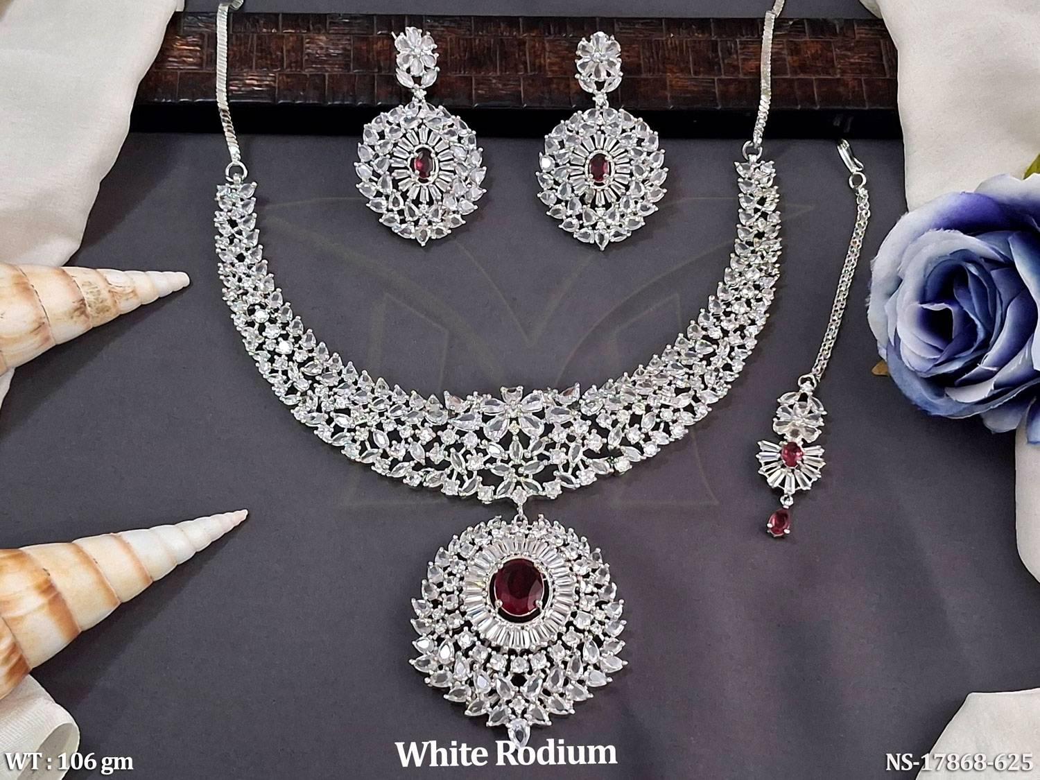 AD CZ Stone White Rodium Designer Party Wear Necklace Set