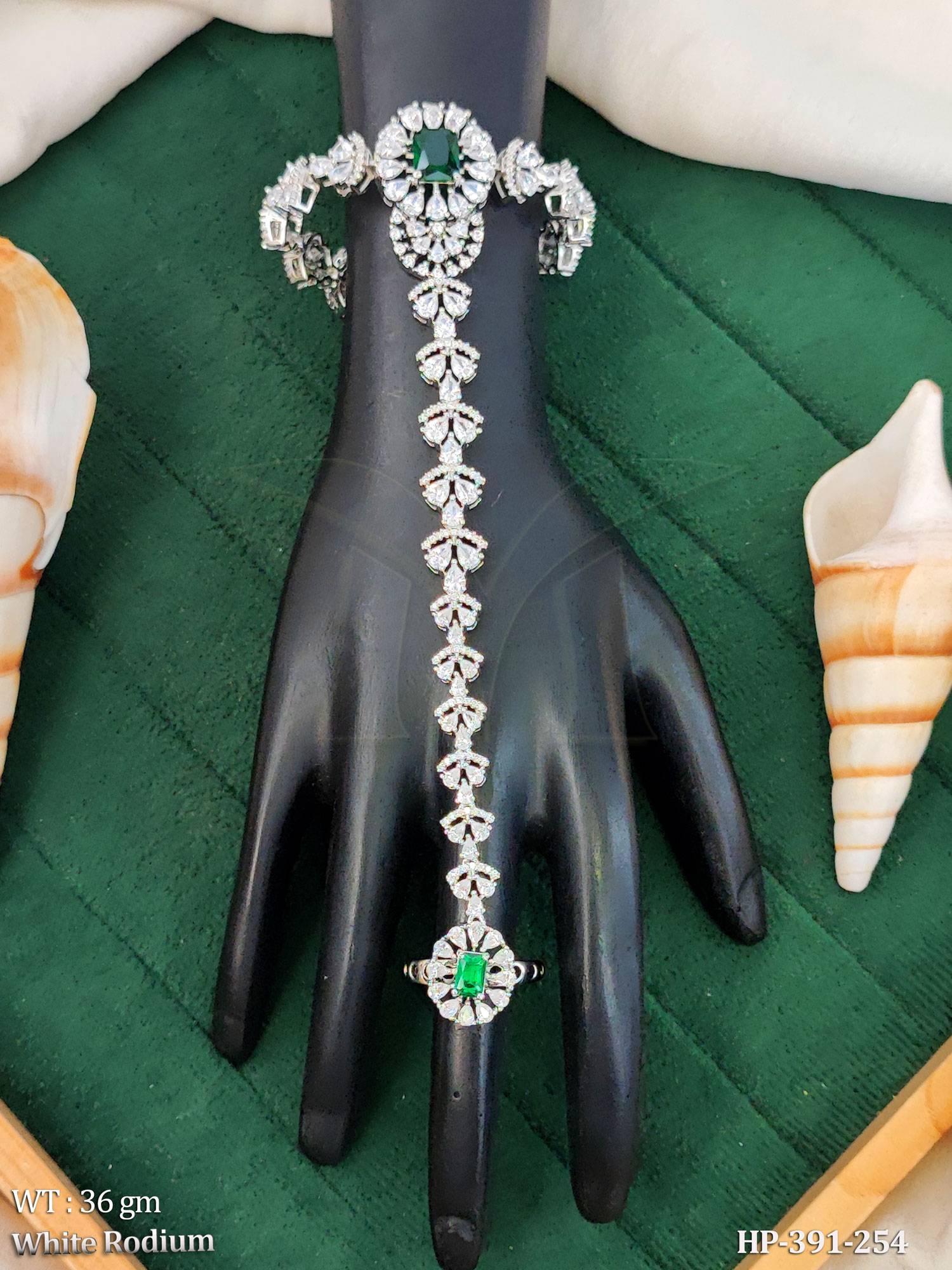 - AD CZ Stone White Rodium Polish Hatth Paan