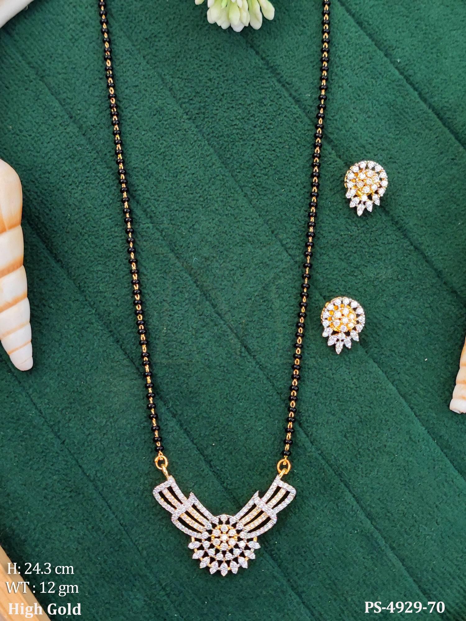 American Diamond Floral High Gold Mangalsutra Pendant Set